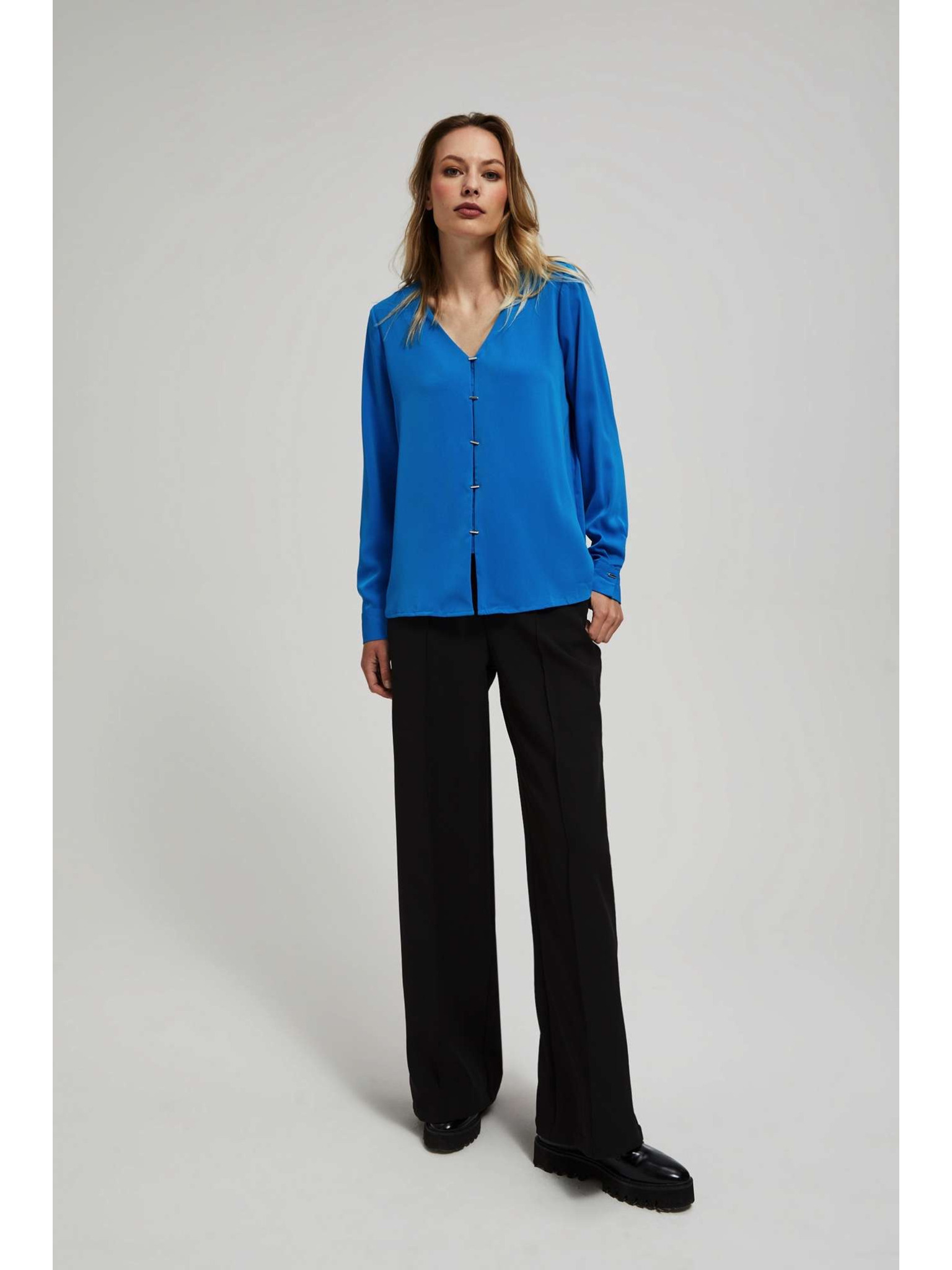 V-nyakú ing díszgombokkal lila Moodo