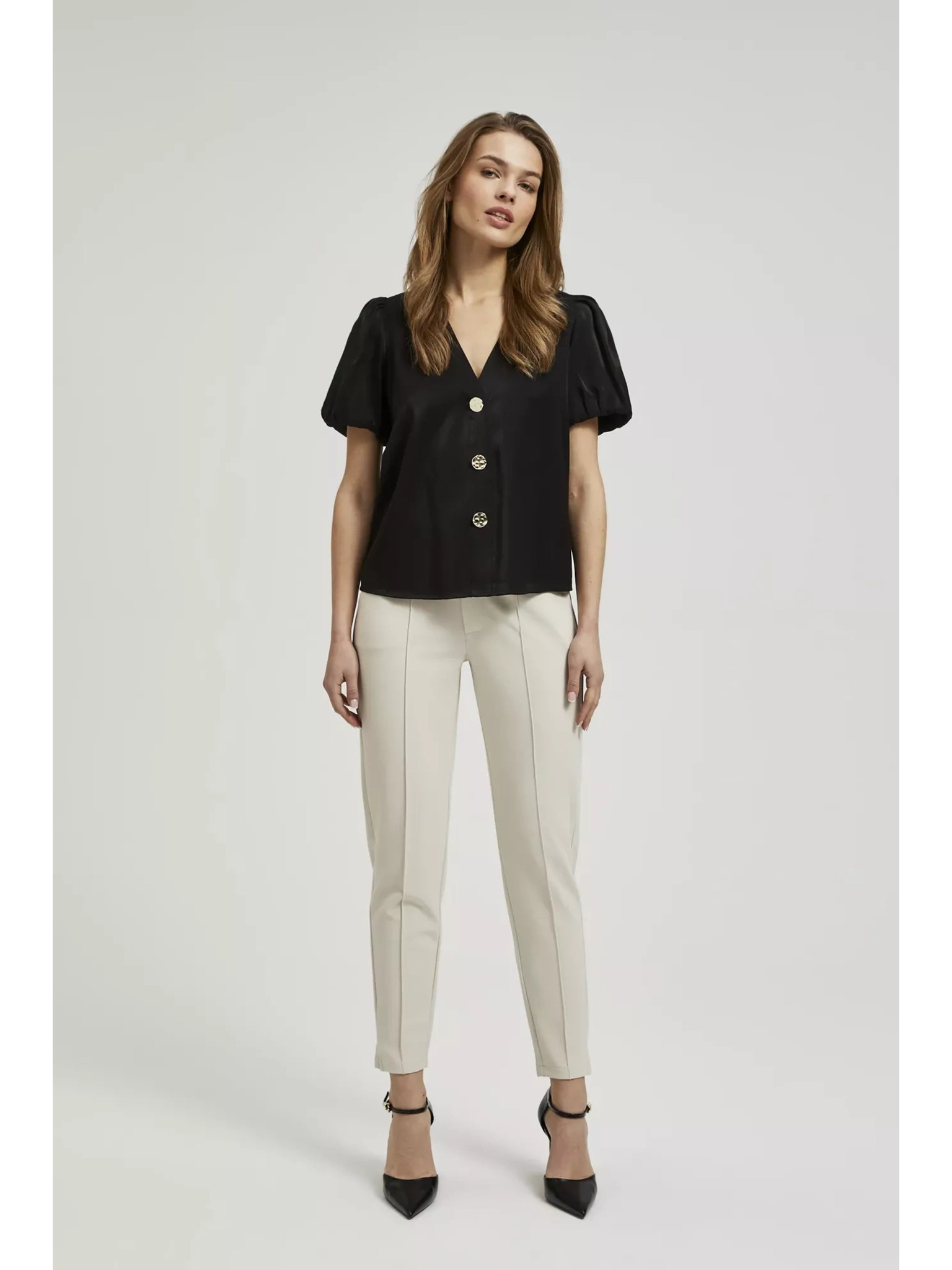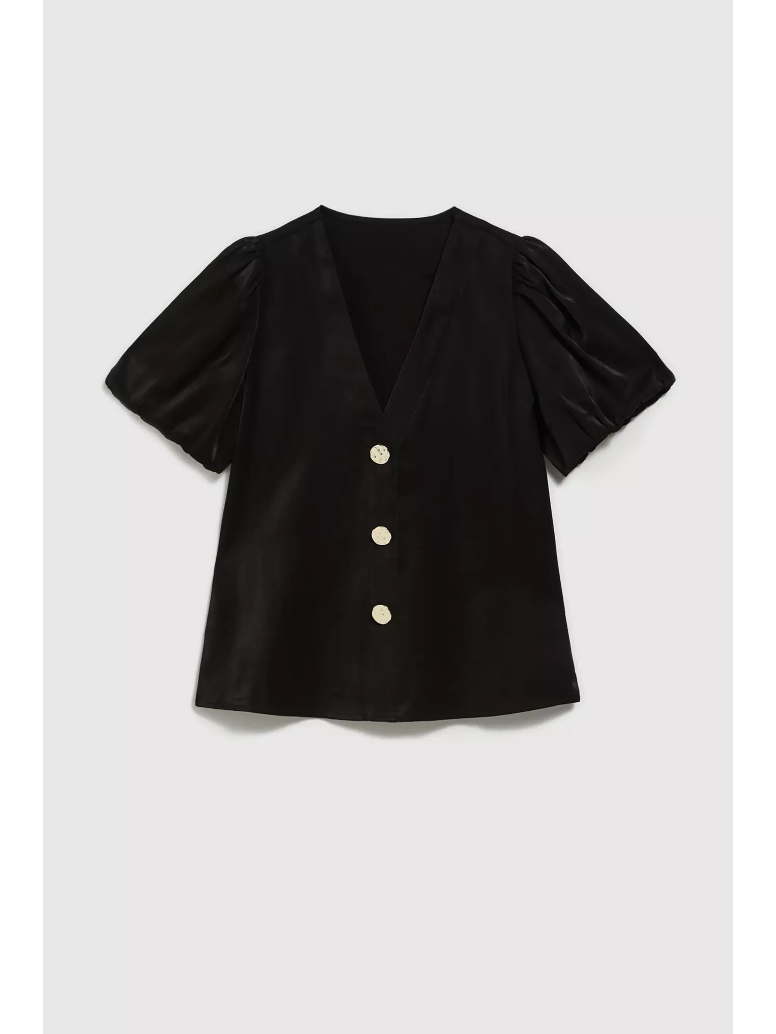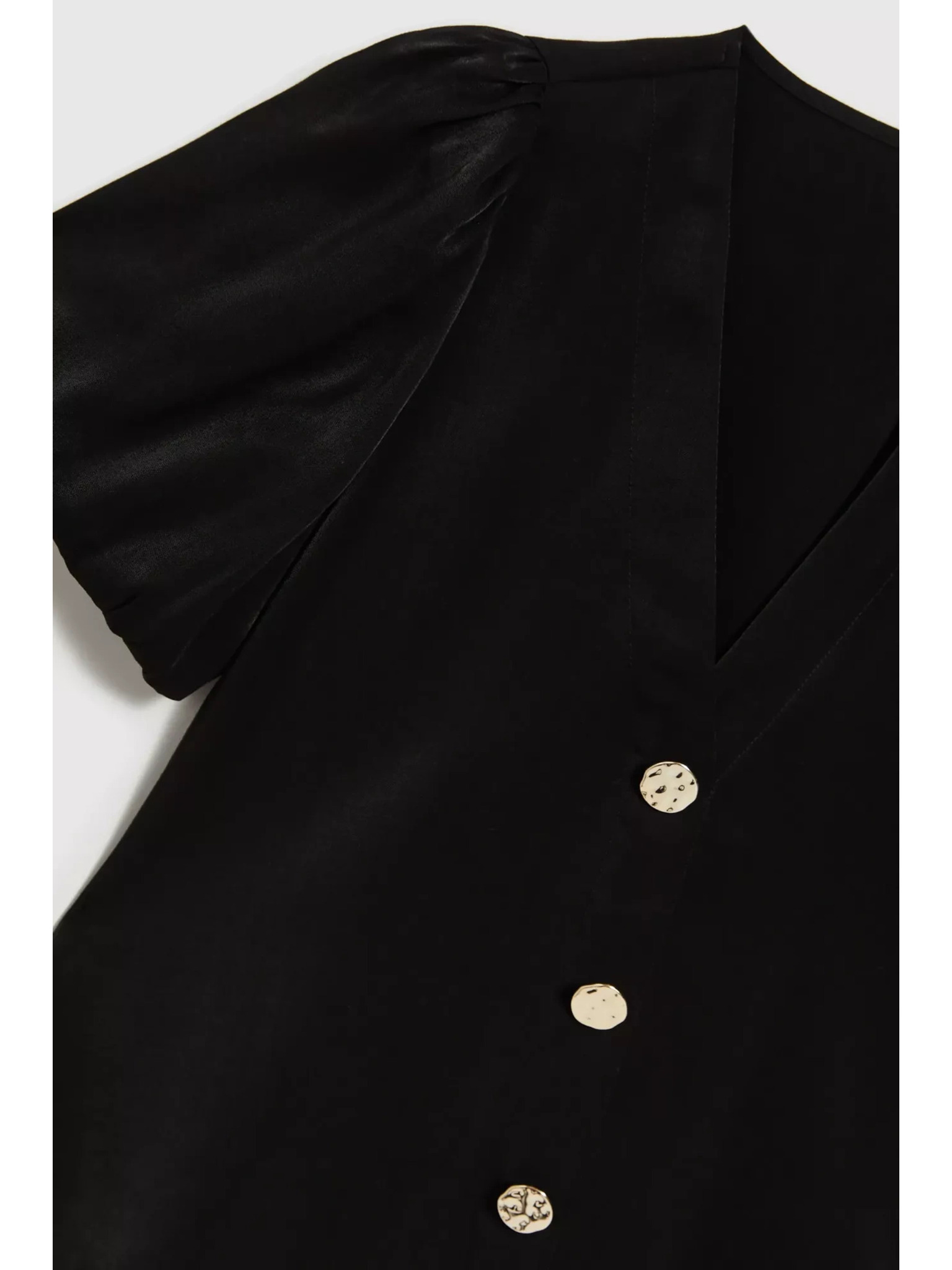 Fekete ing ráncolt ujjakkal és díszgombokkal Moodo