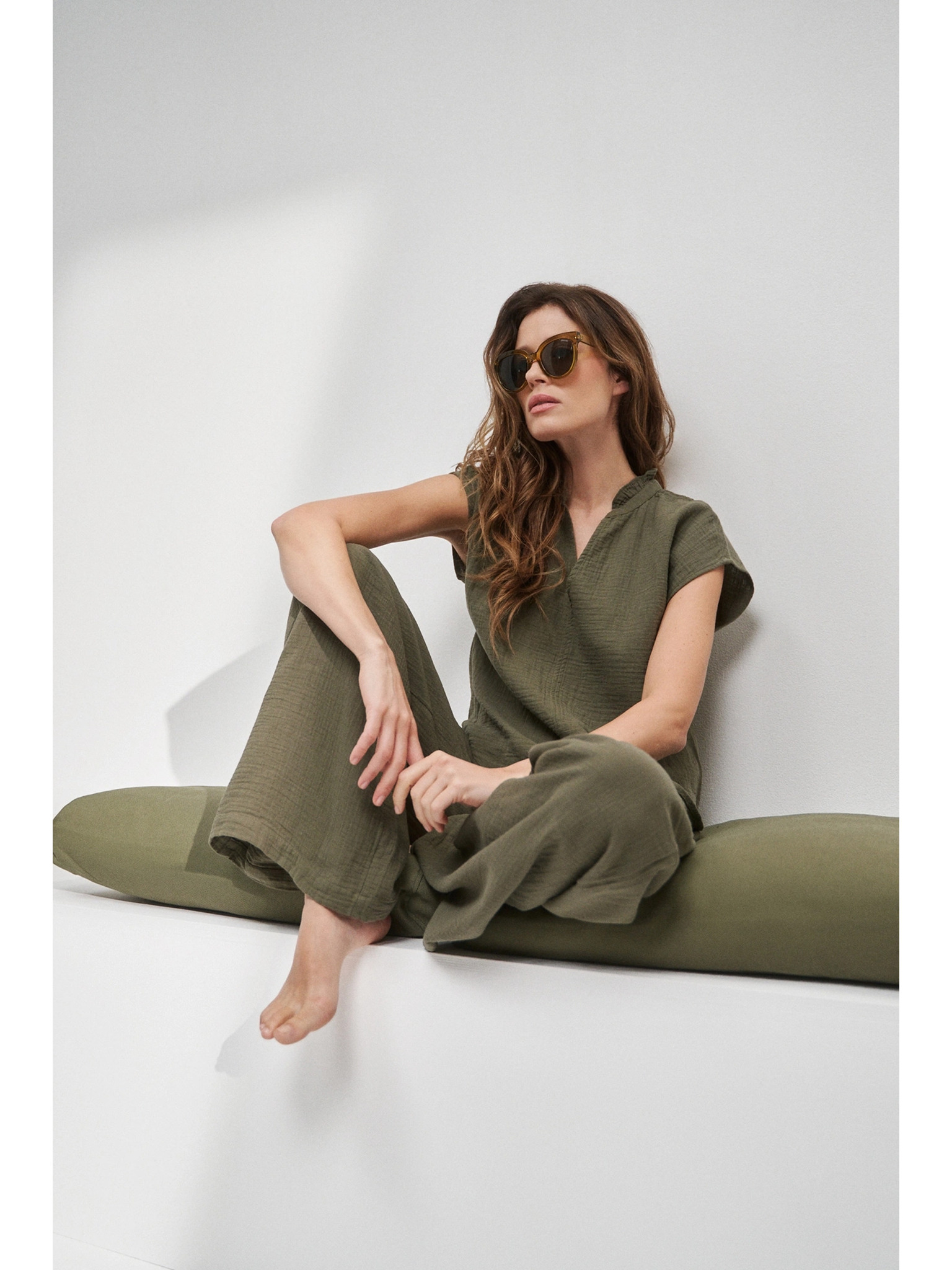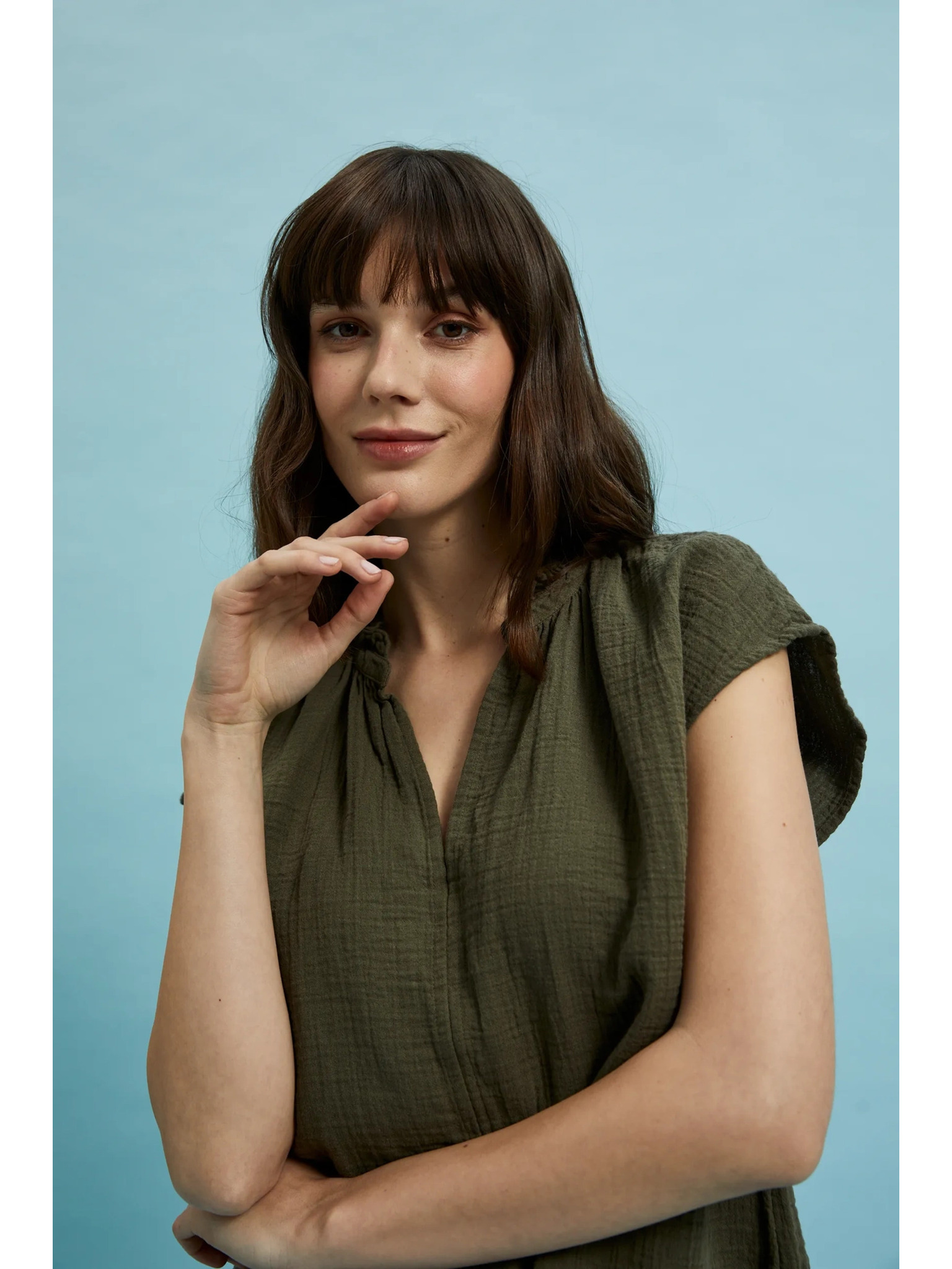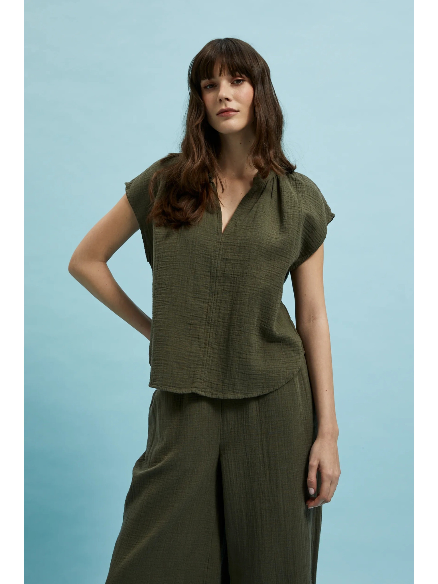 Olíva V-nyakú pamut felső Moodo