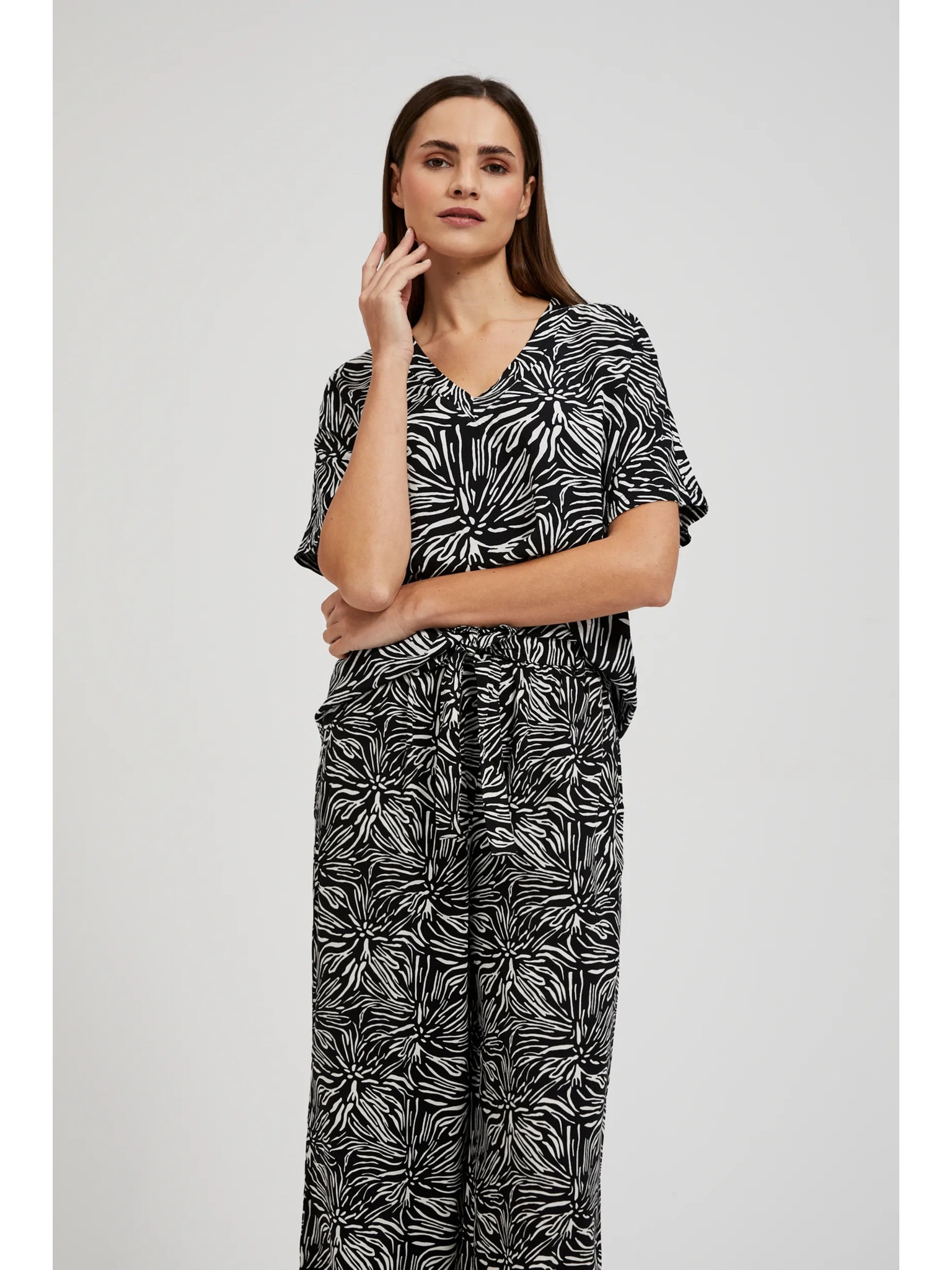 ORSAY barna-fekete szatén virágmintás női blúz