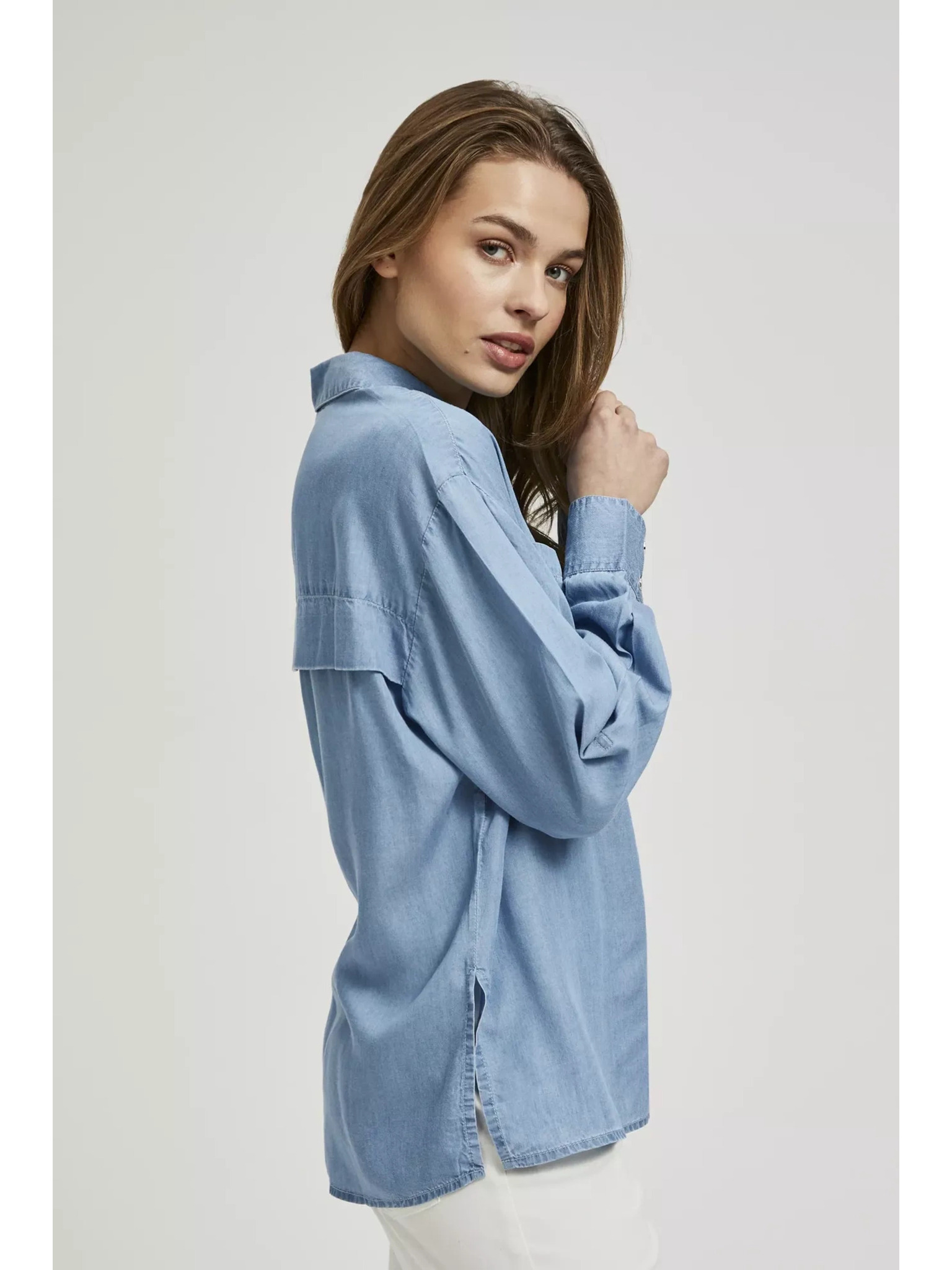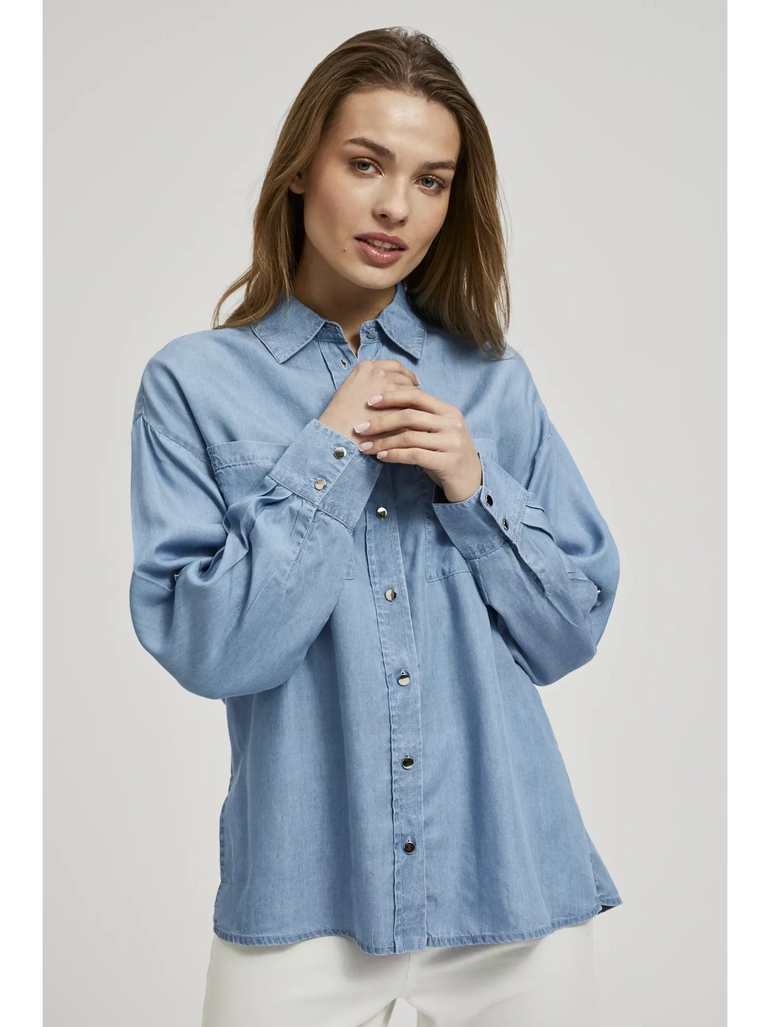 Világoskék ráncolt ujjú ing Moodo