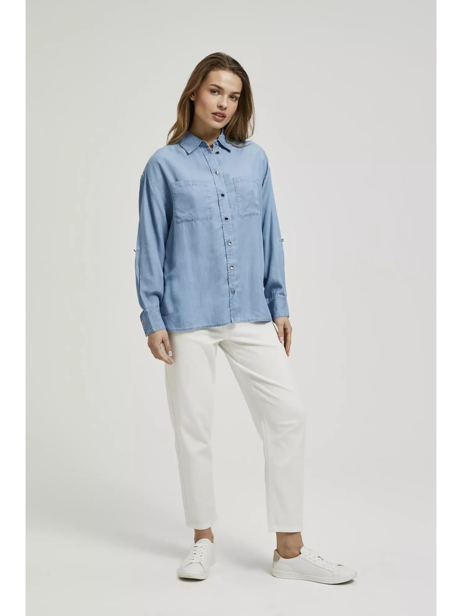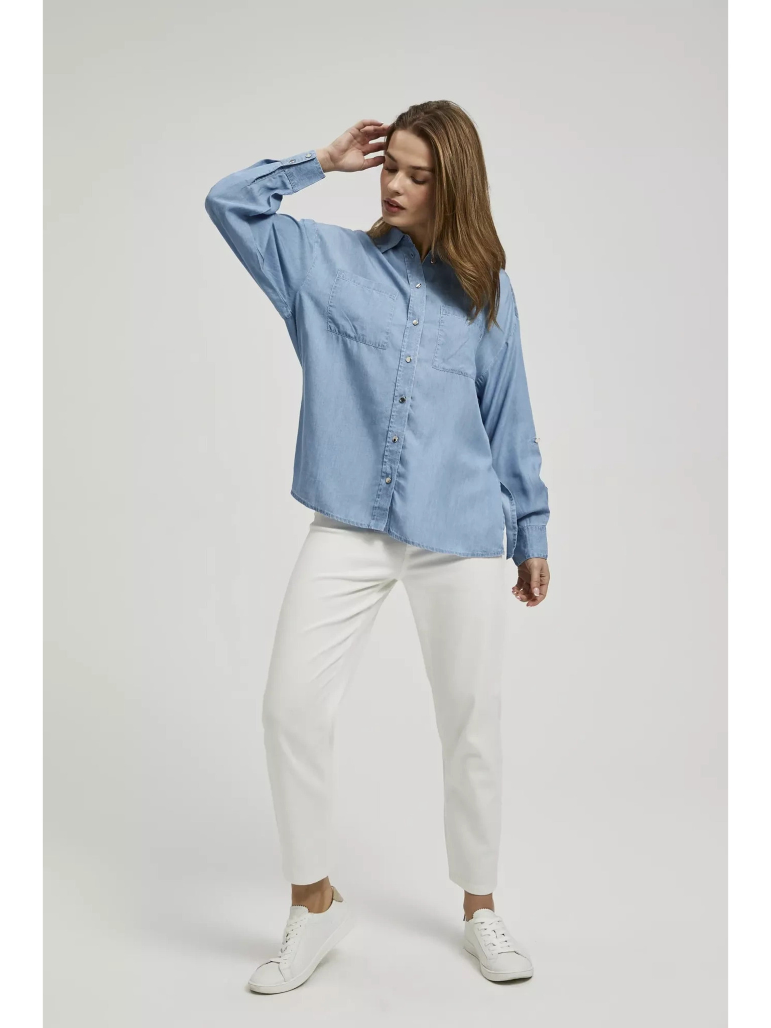 Fehér felhajtott ujjú blúz Moodo