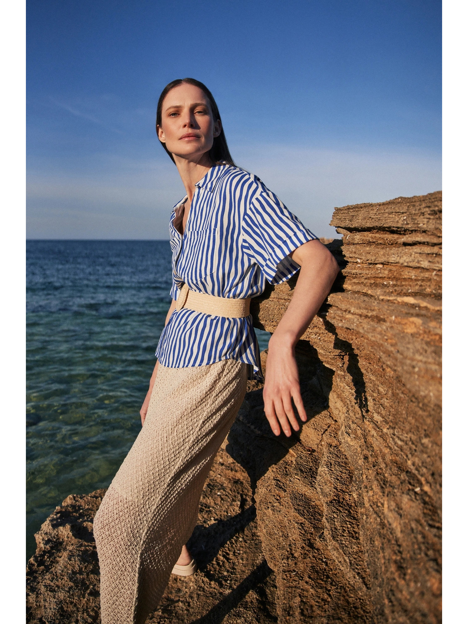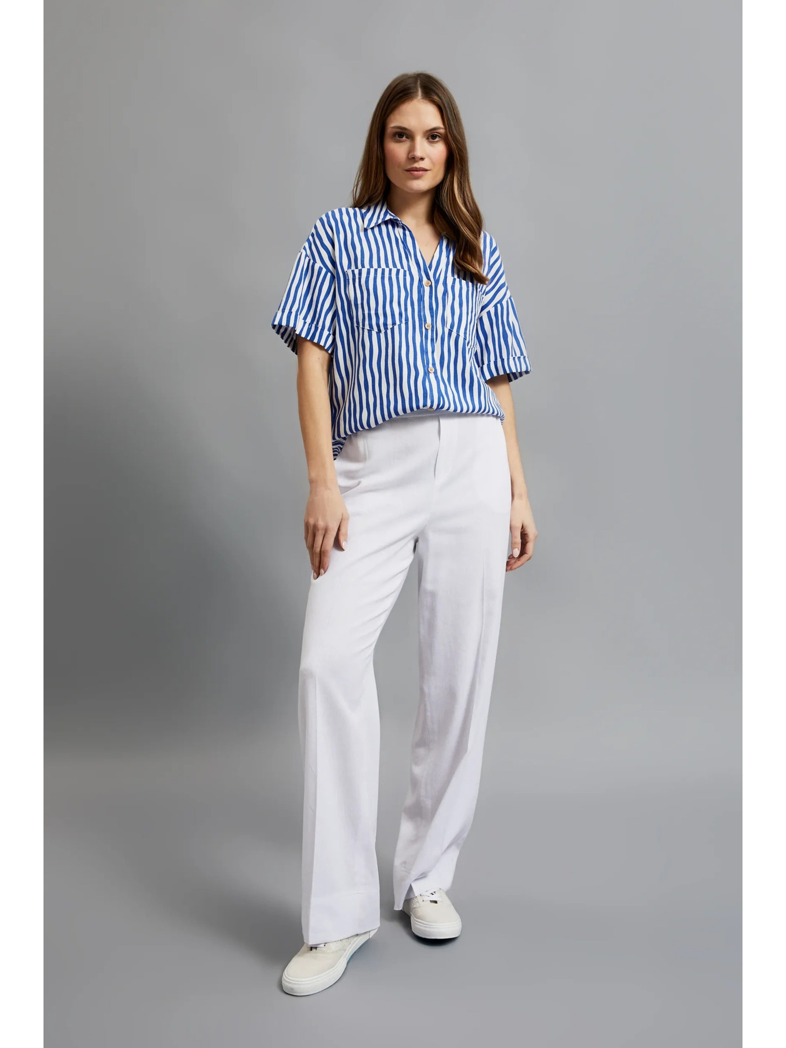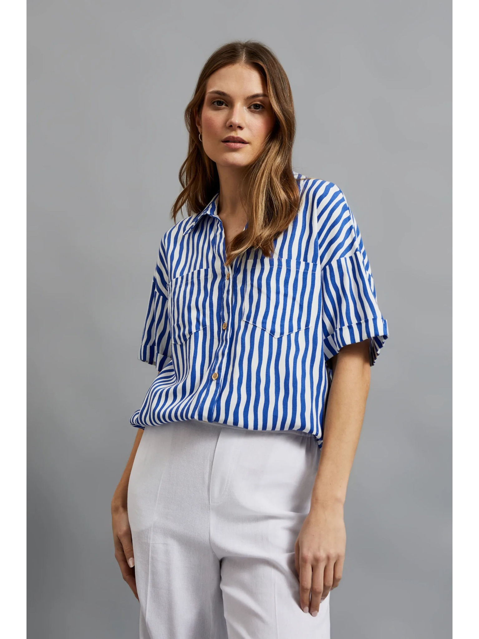 Bézs női ing rövid ujjakkal