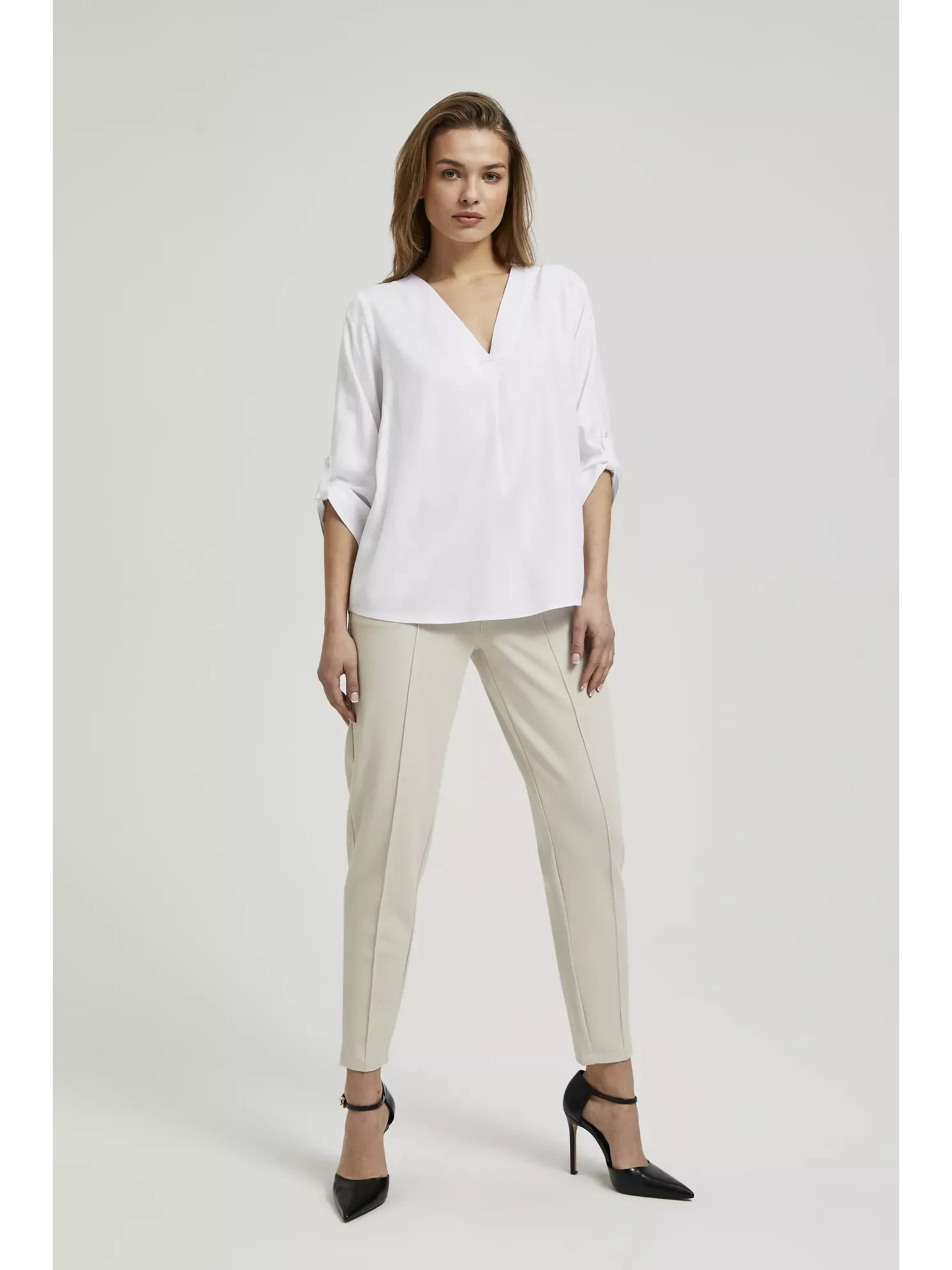Fehér V-nyakú blúz Moodo