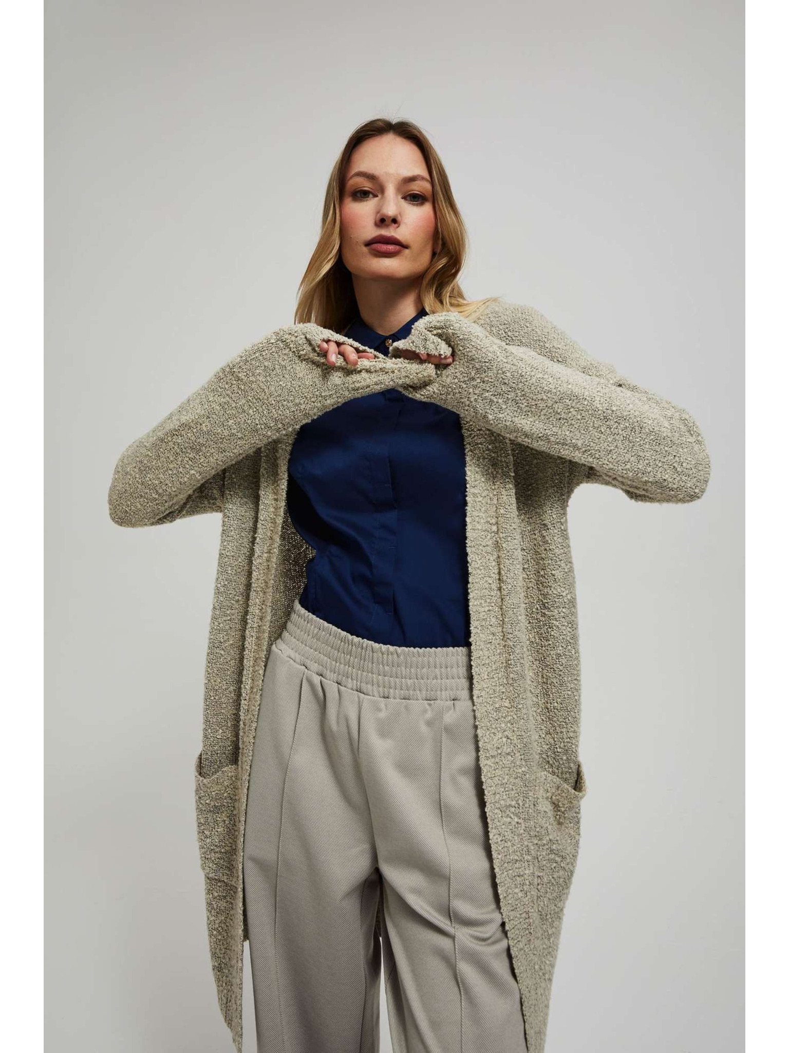 Bézs színű hosszú kardigán Moodo