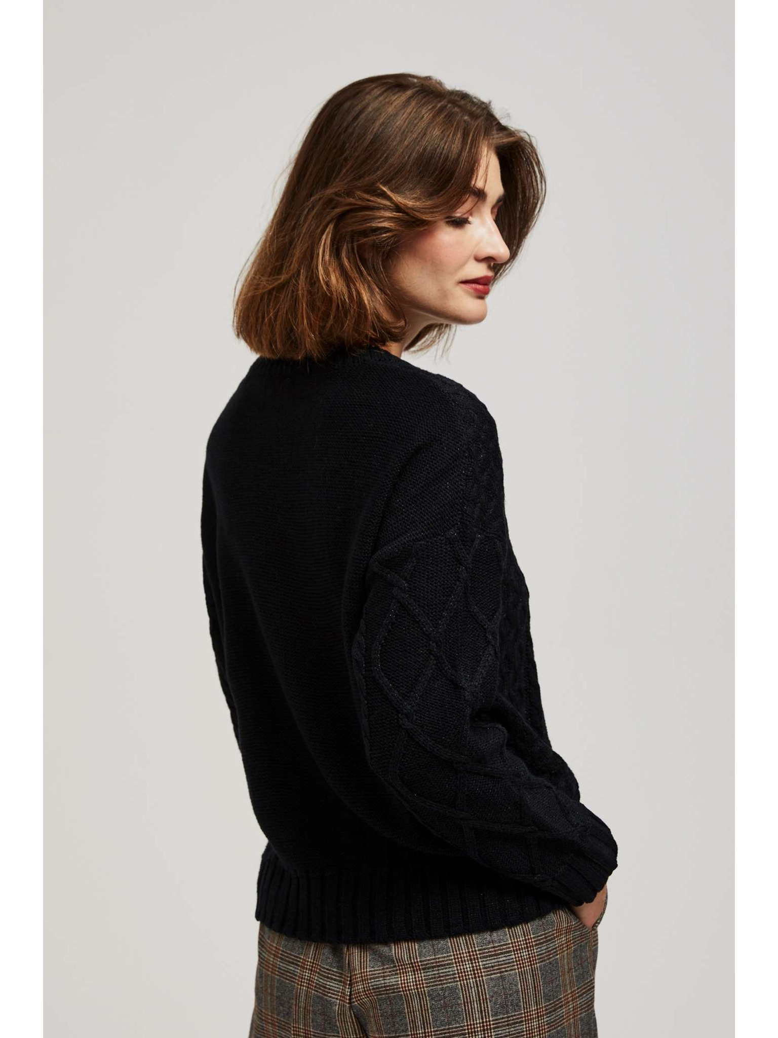 Moodo fekete díszkötéses hosszú ujjú pulóver