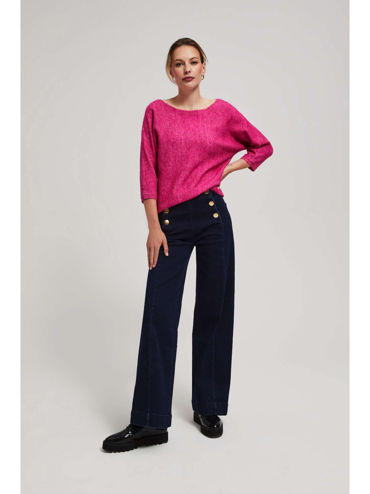 Fuchsia zsinóros pulóver Moodo
