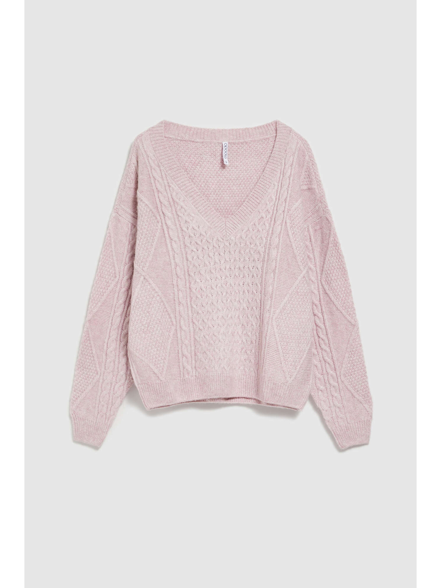 Rózsaszín Moodo pulóver díszített fonott mintával