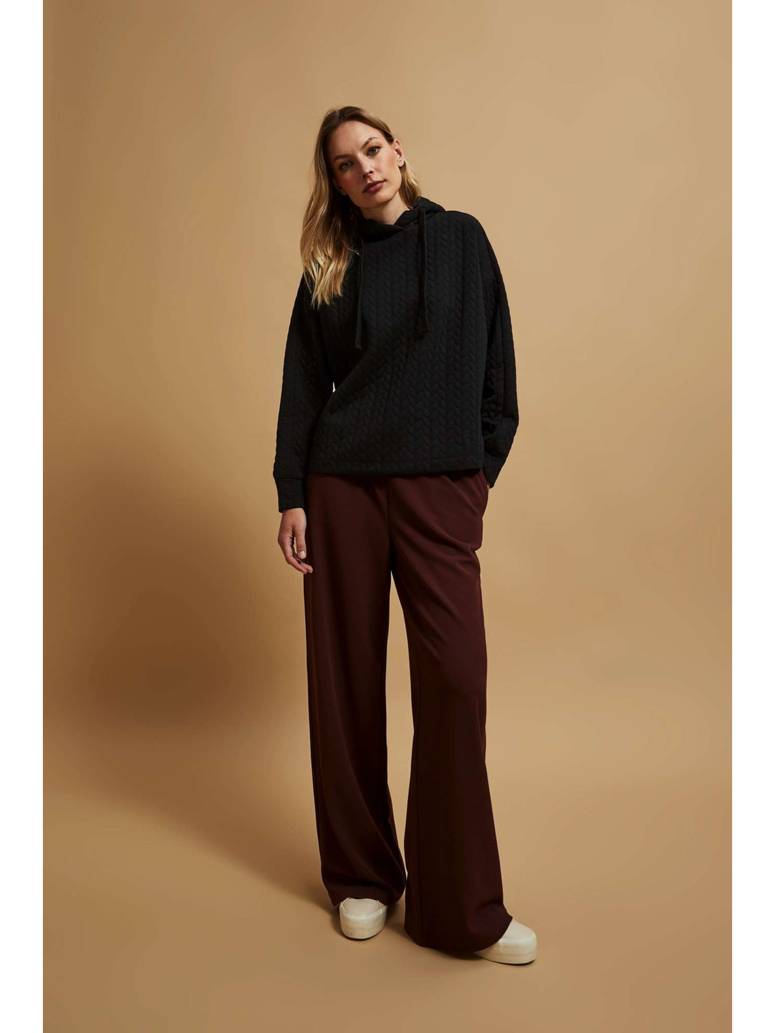 Fekete-fehér csíkos cipzáras kapucnis pulóver Moodo