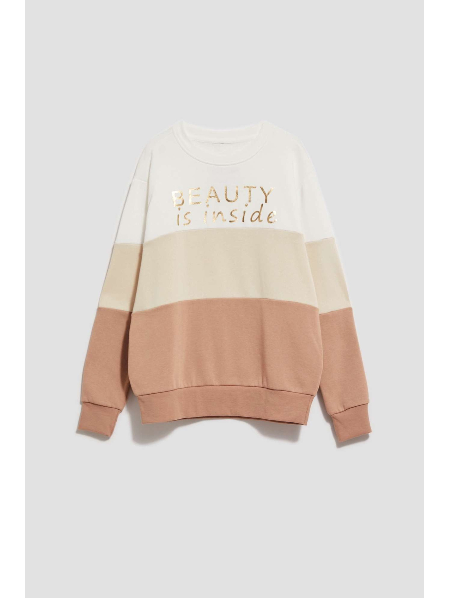 Széles nyakú homokszínű pulóver Moodo