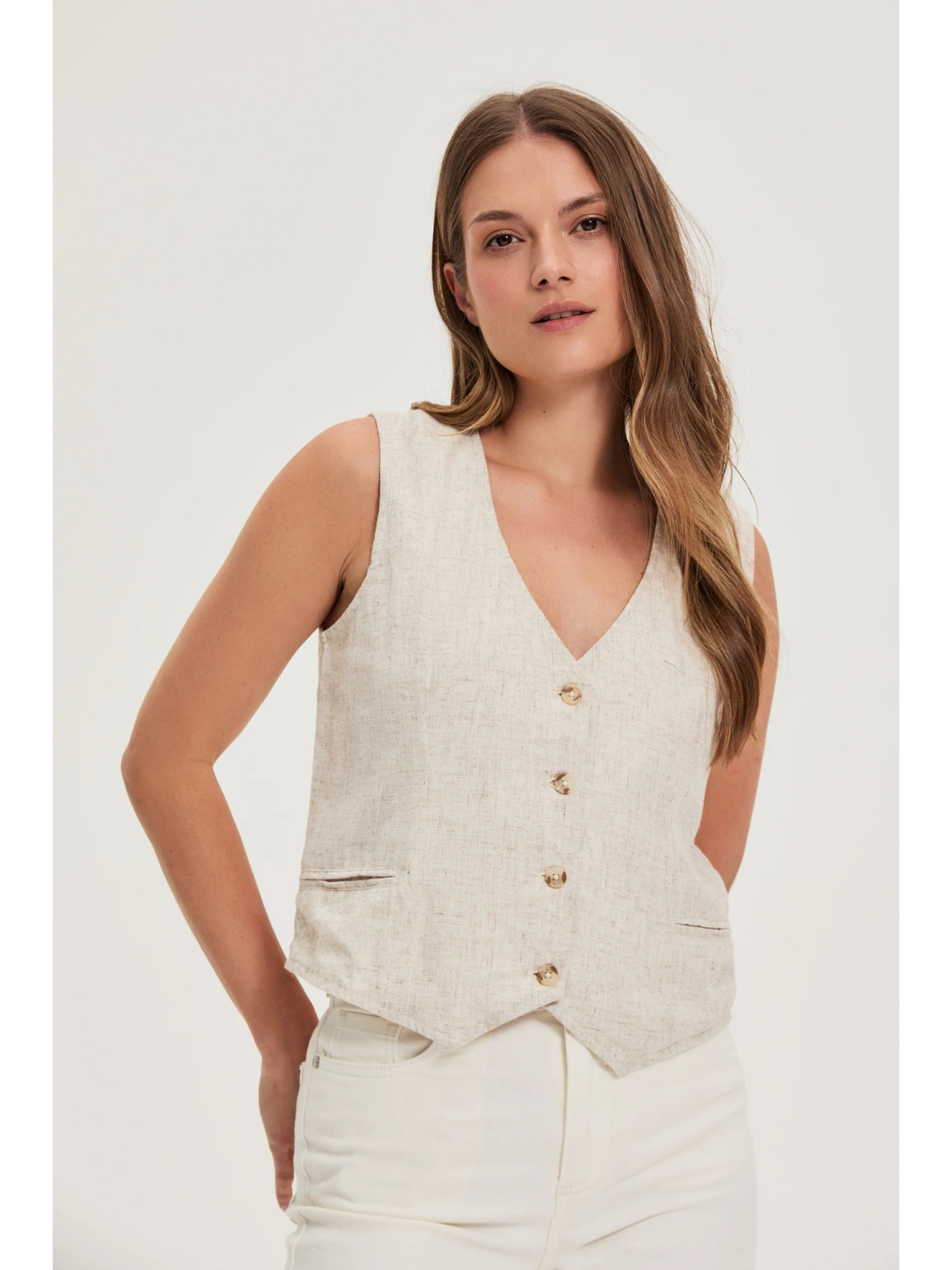 Moodo bézs színű női blézer