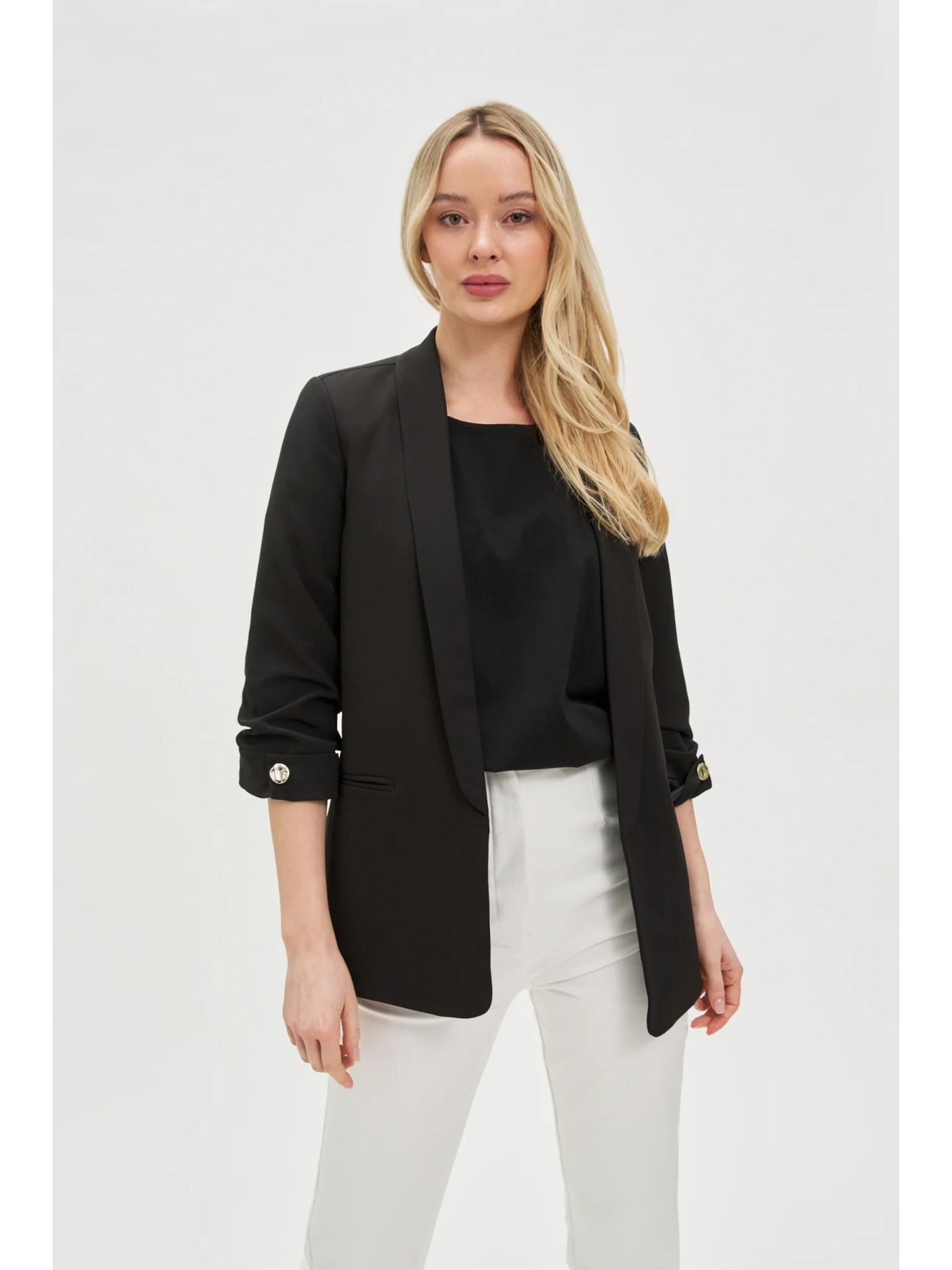 Zakó ráncolt 3/4-es ujjal fekete Moodo