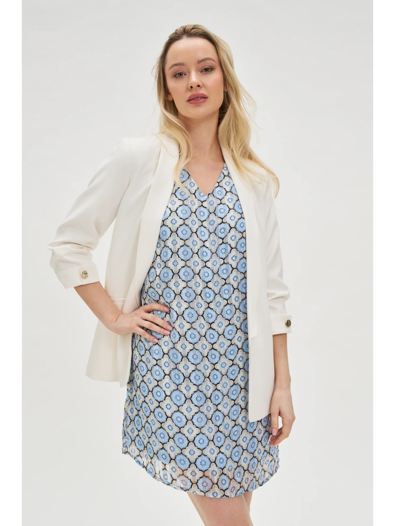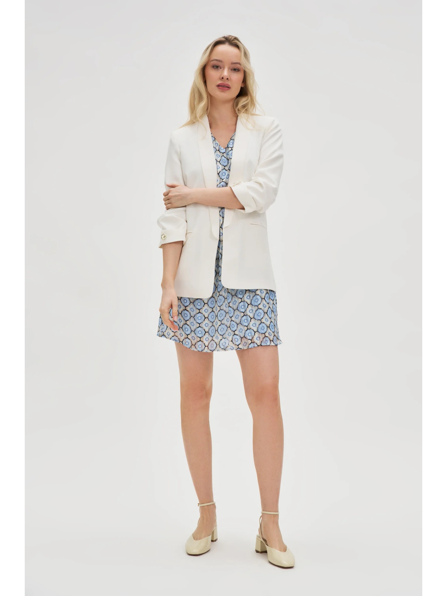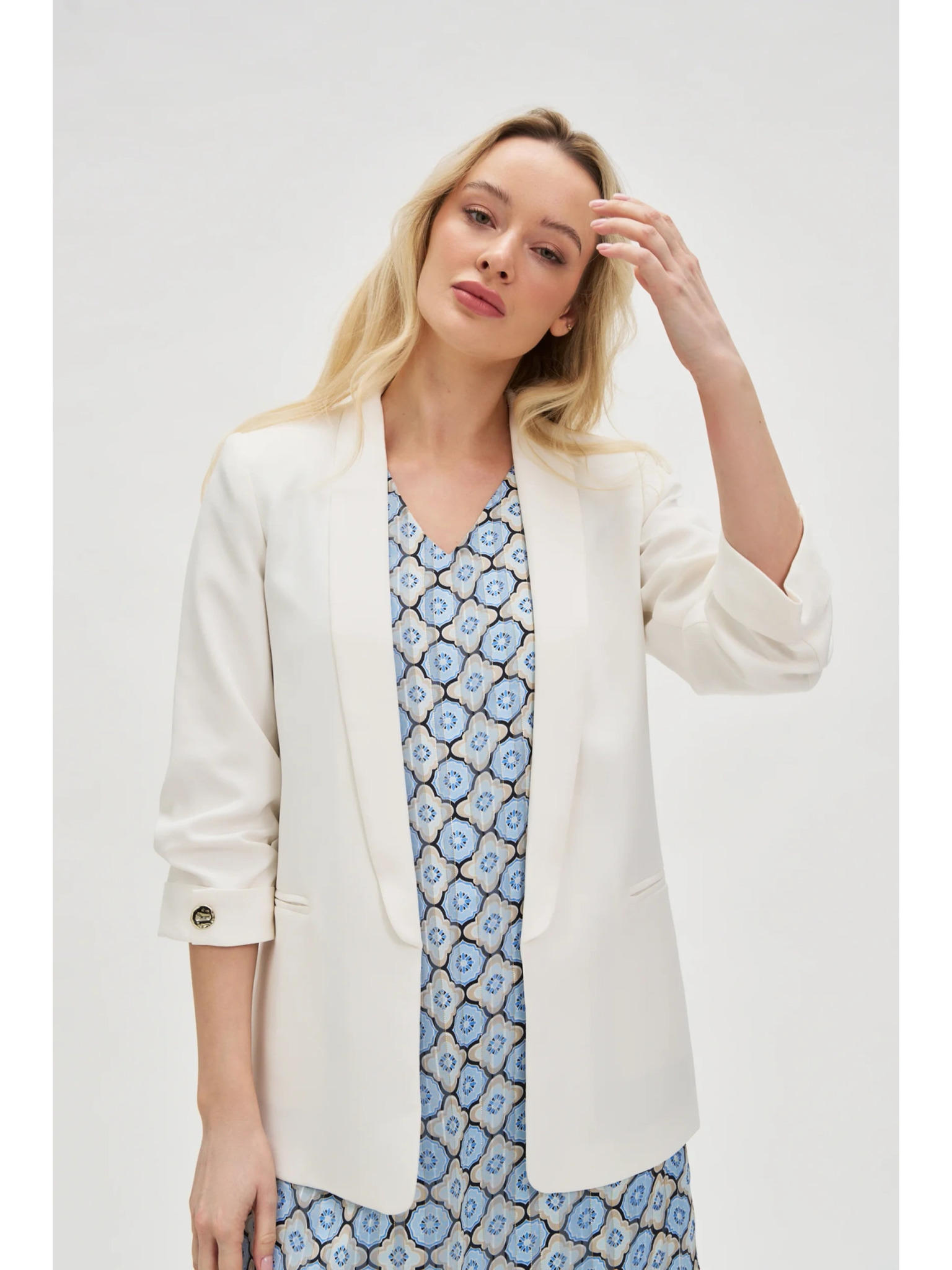 Zakó ráncolt ujjal fehér Moodo