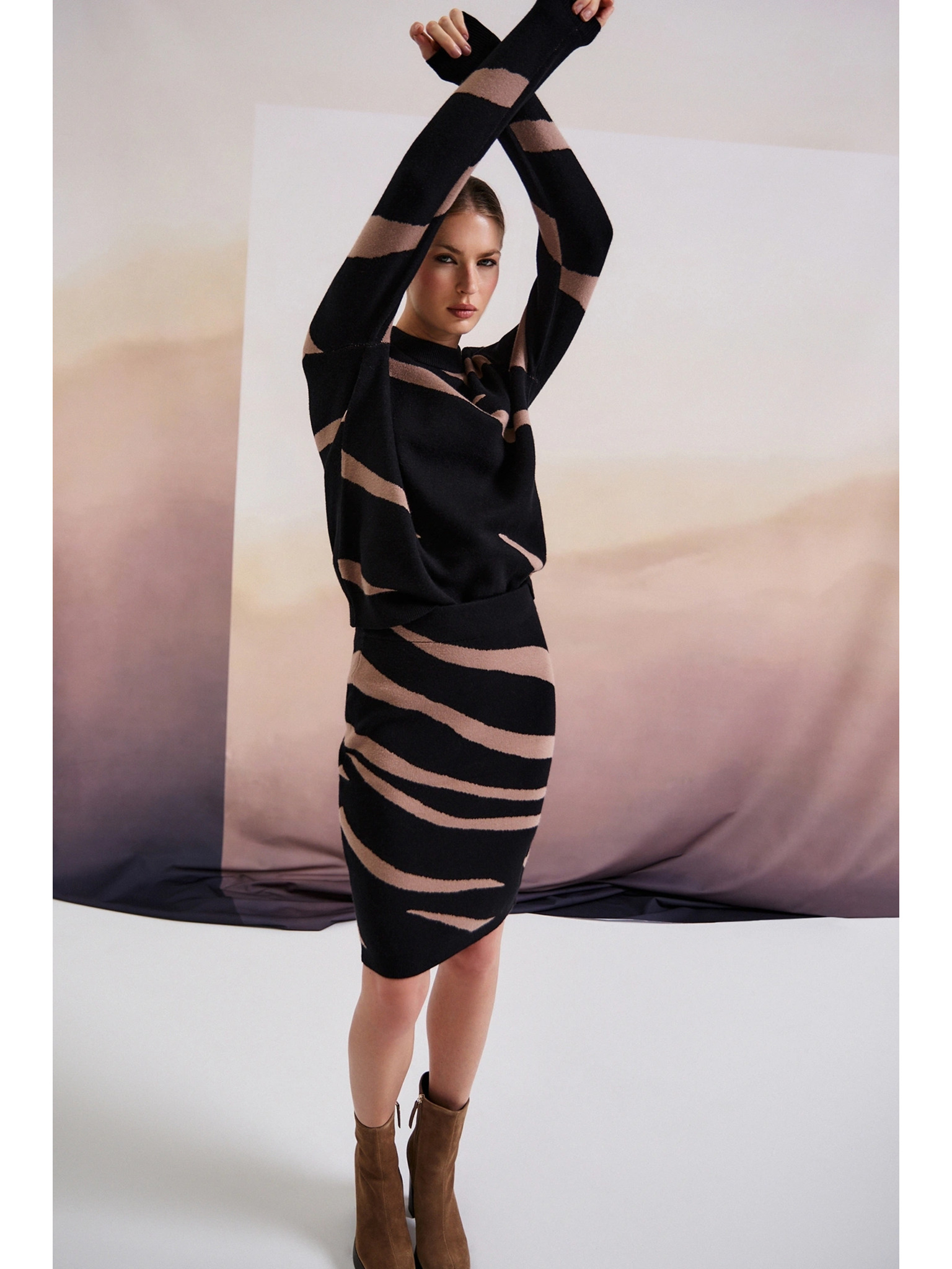 ORSAY bézs-fekete csipke női ceruzaszoknya