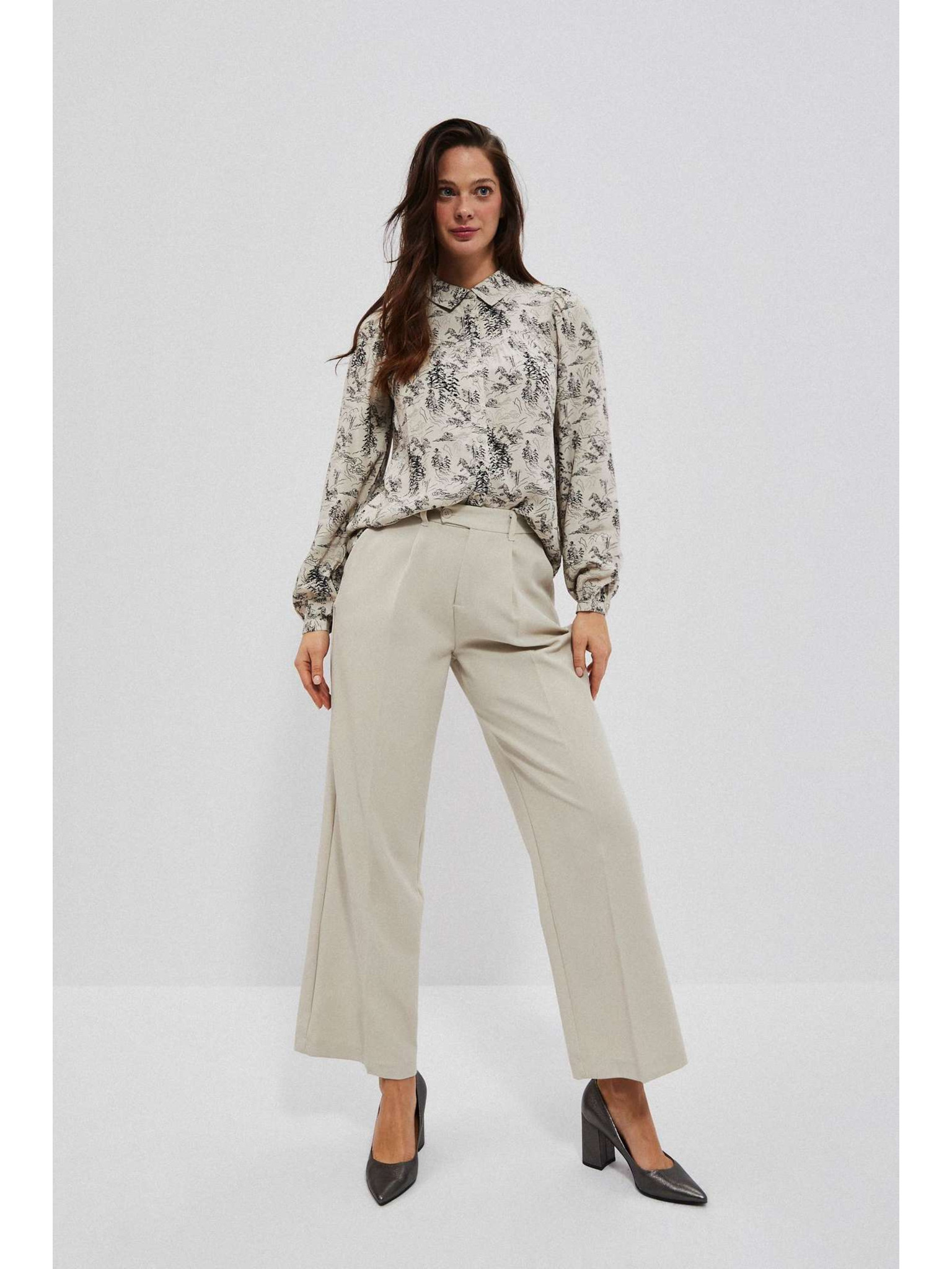 Bézs pliszírozott nadrág Moodo