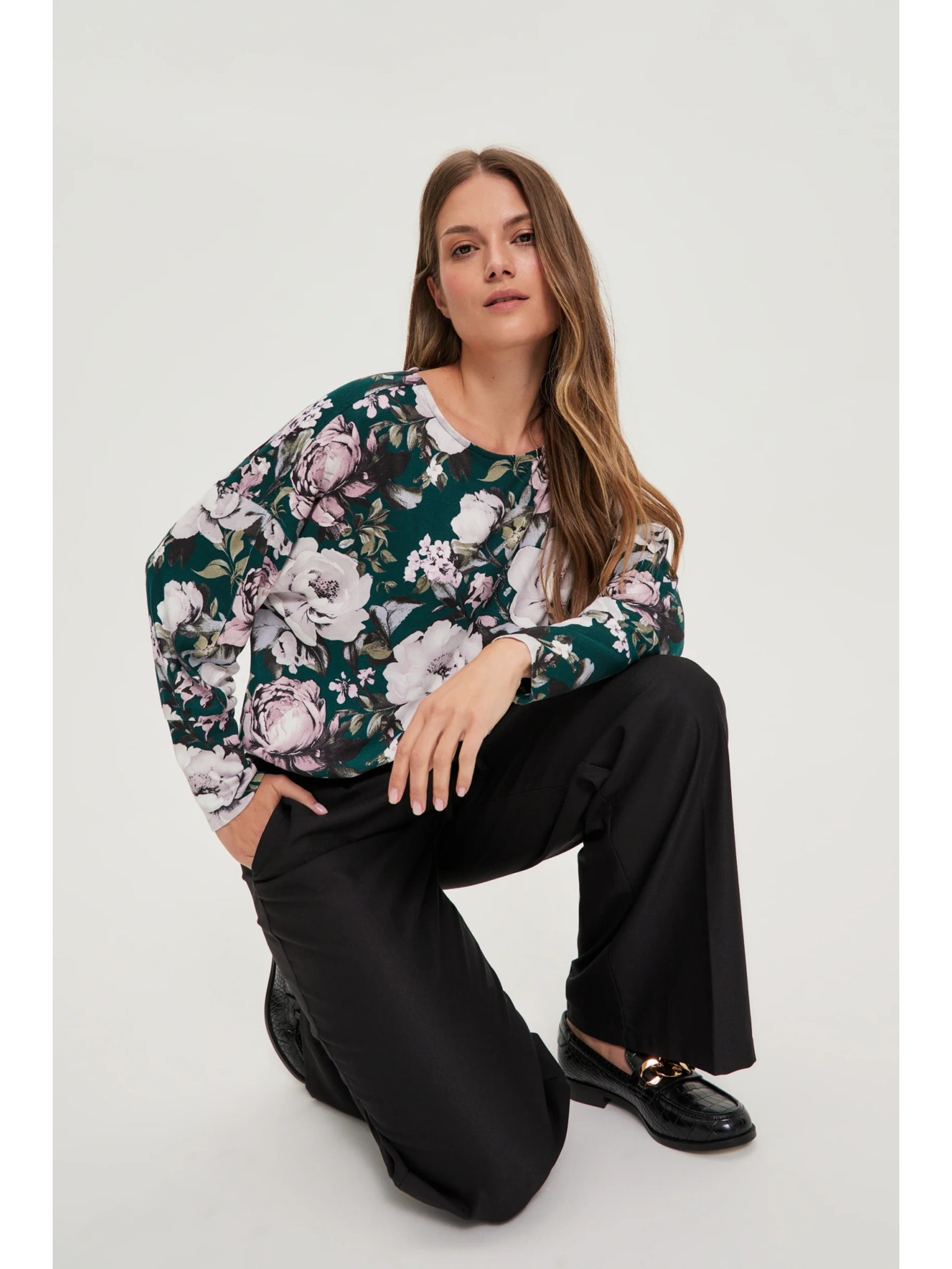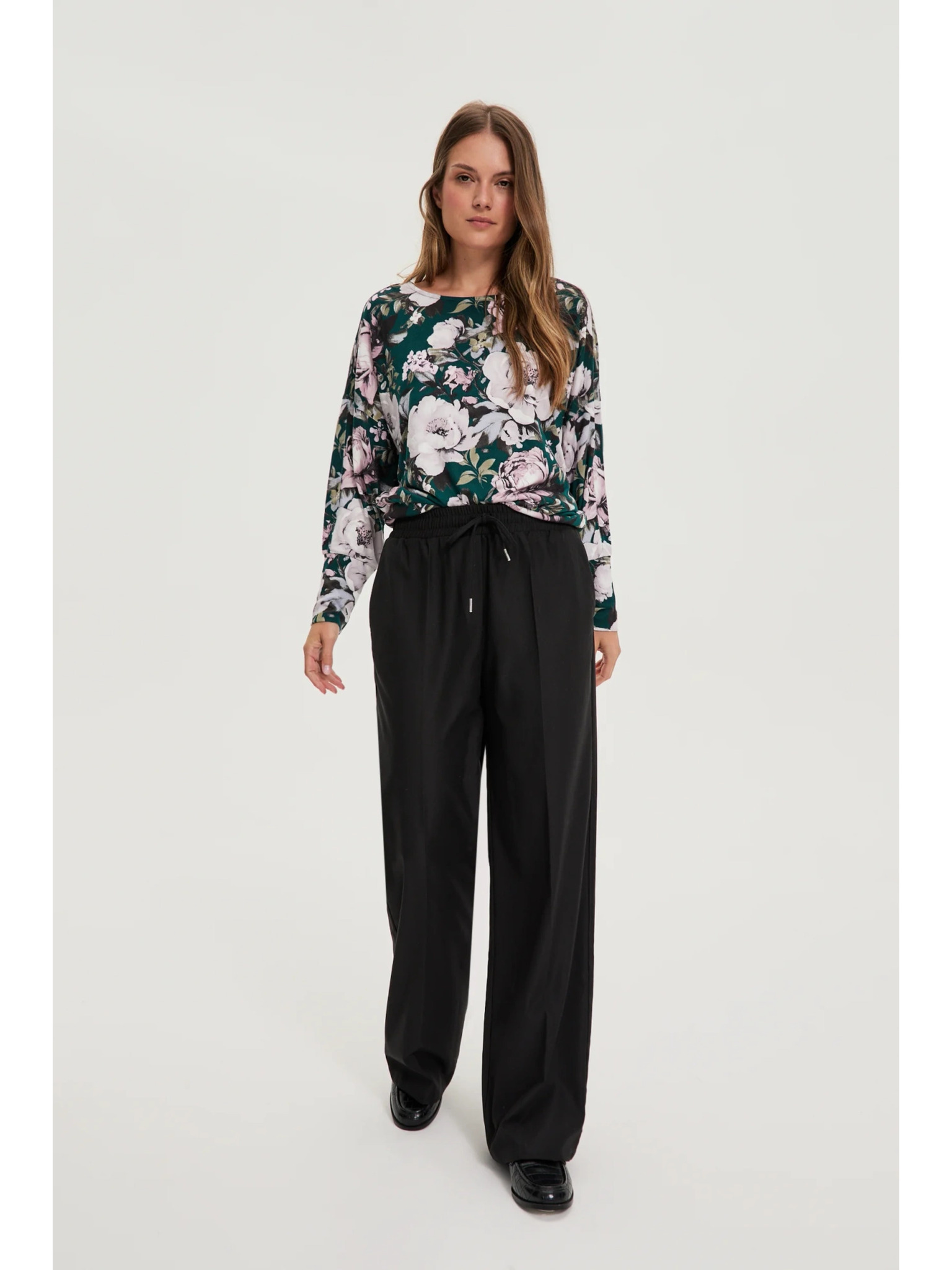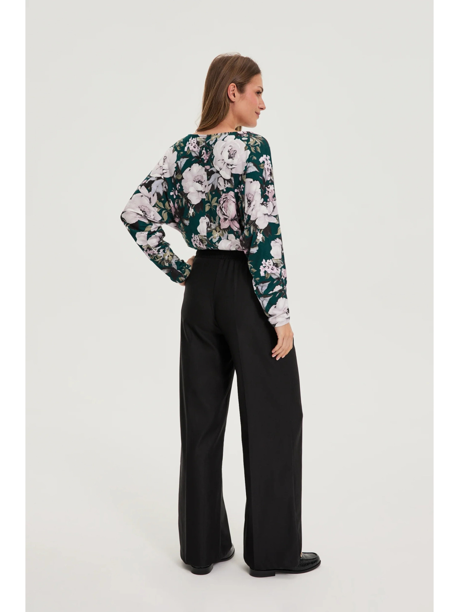 Elegáns fekete hajtásos nadrág Moodo