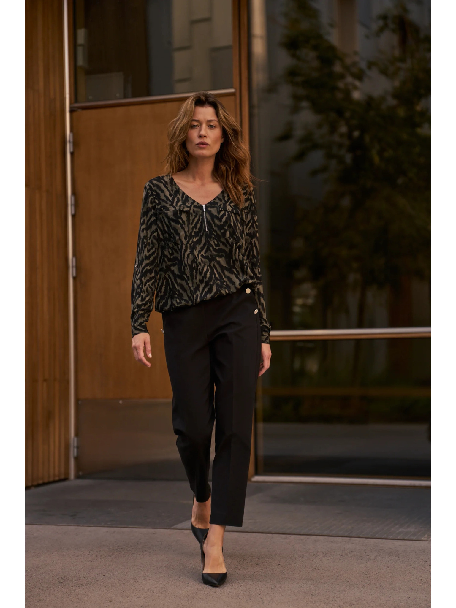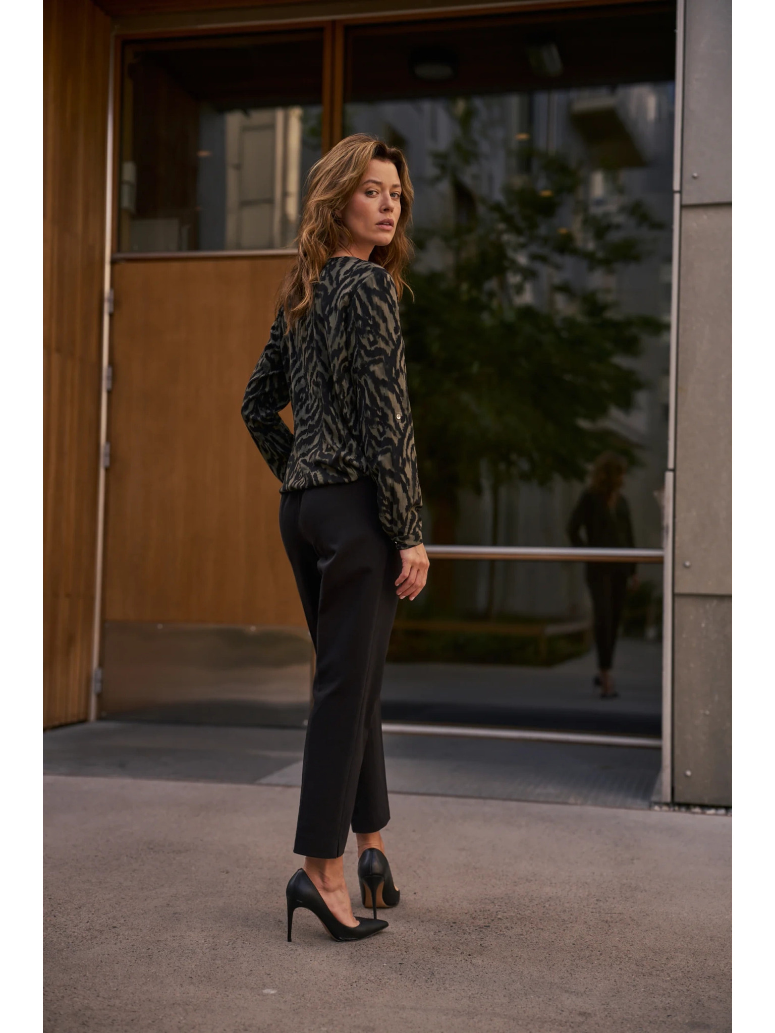 • modell méretei: A képen látható modell: magasság - 177 cm, méretek 87/63/90, méret a képen - felső rész - S, alsó rész - S