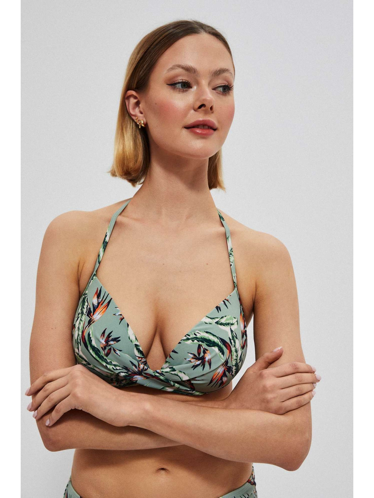 Háromszög bikinifelső mintázattal és ráncolt részlettel Marks & Spencer zöld