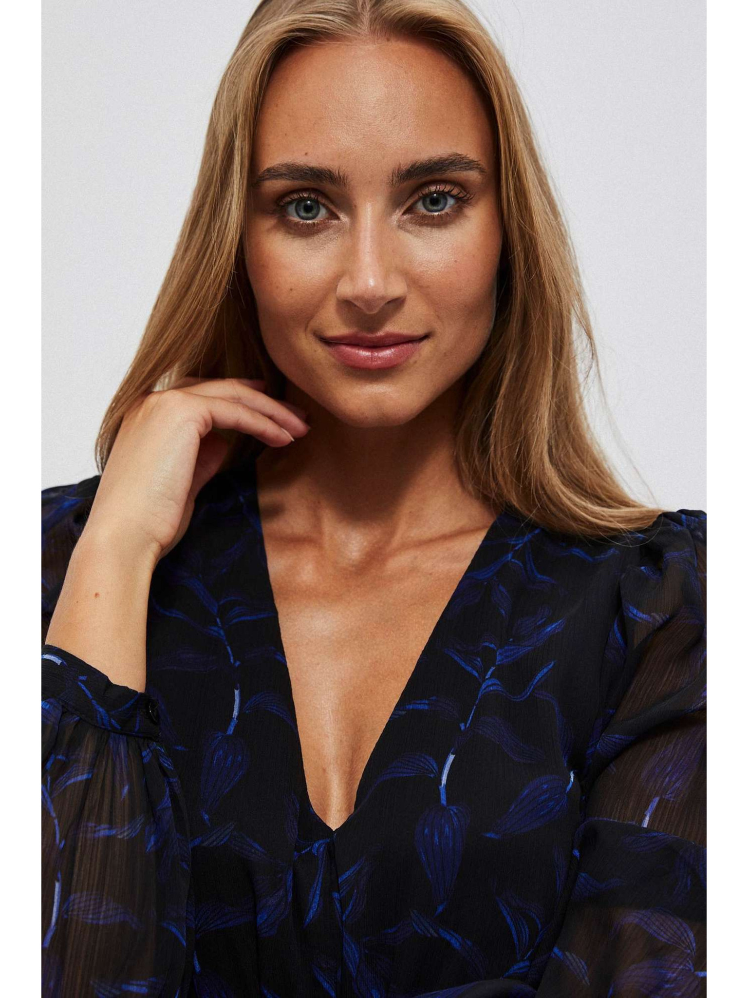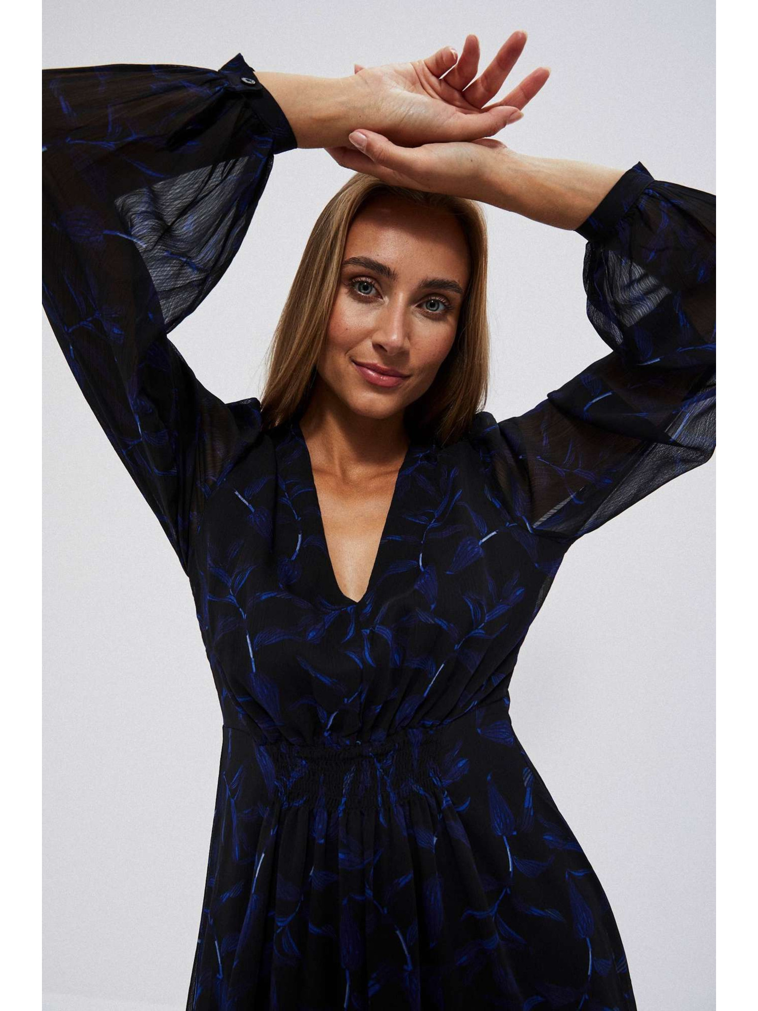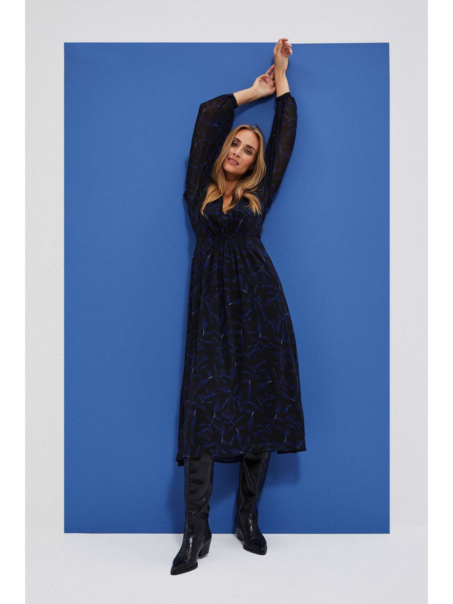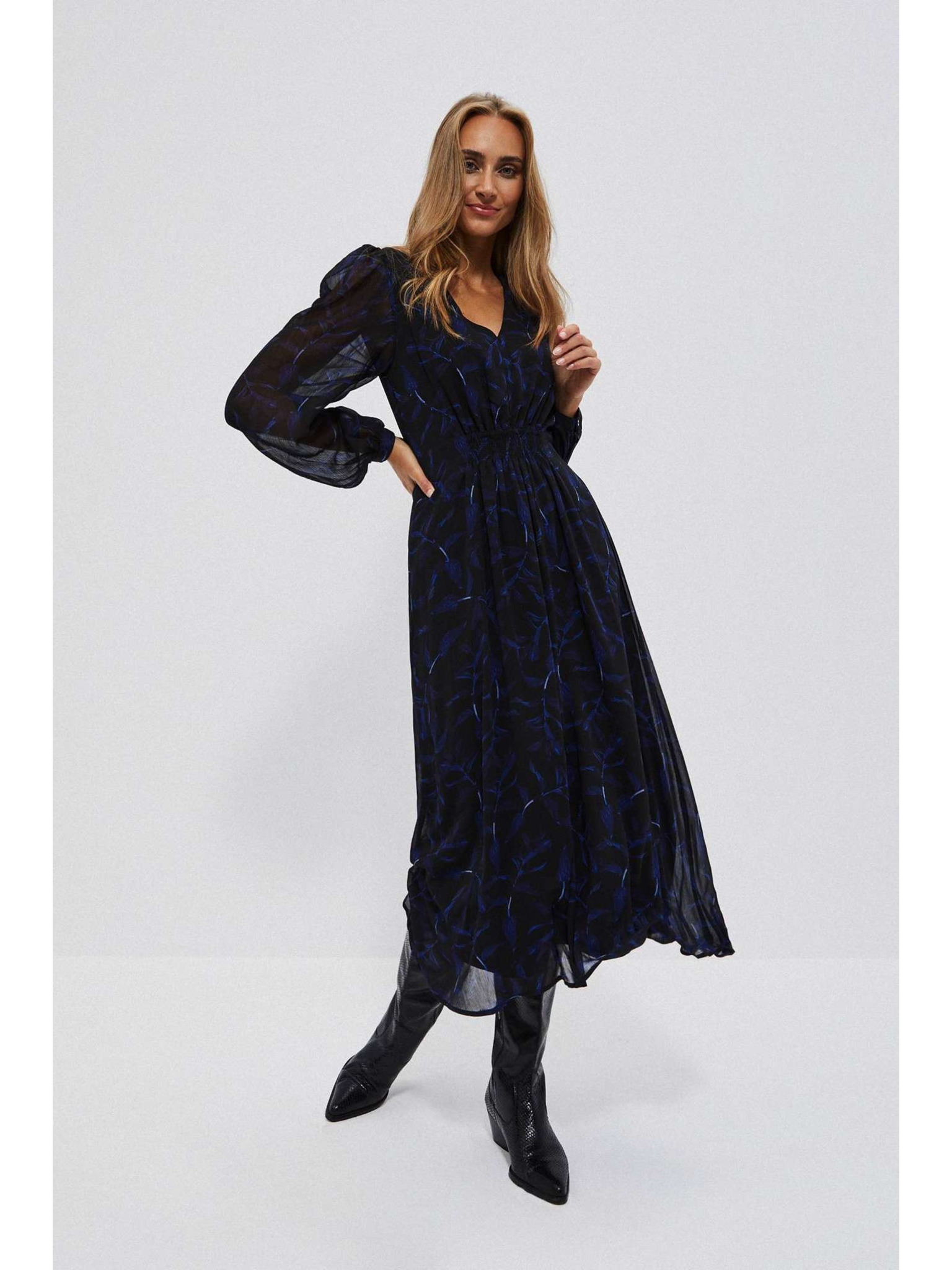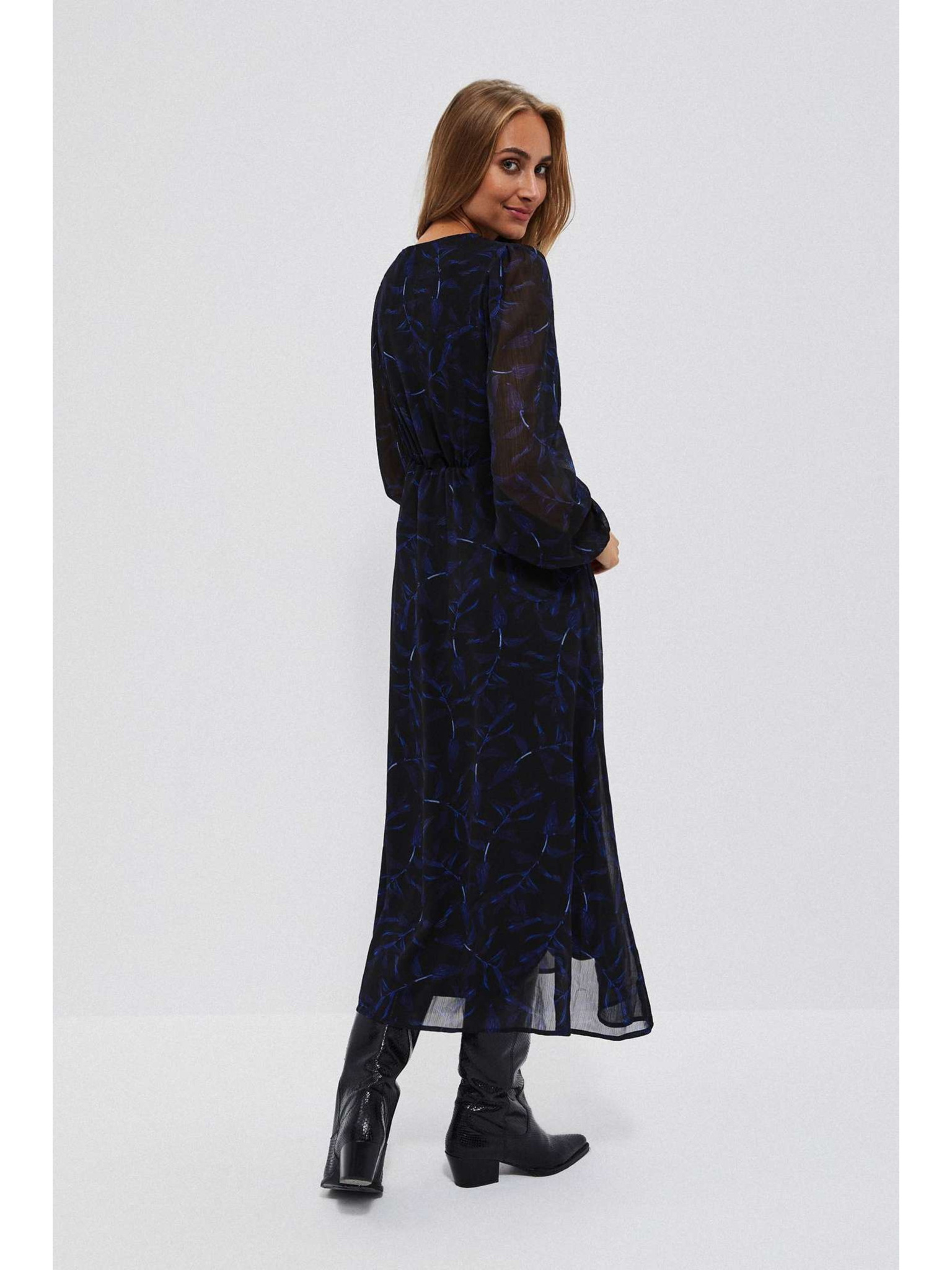 Mintás fekete dekoltált ruha Moodo
