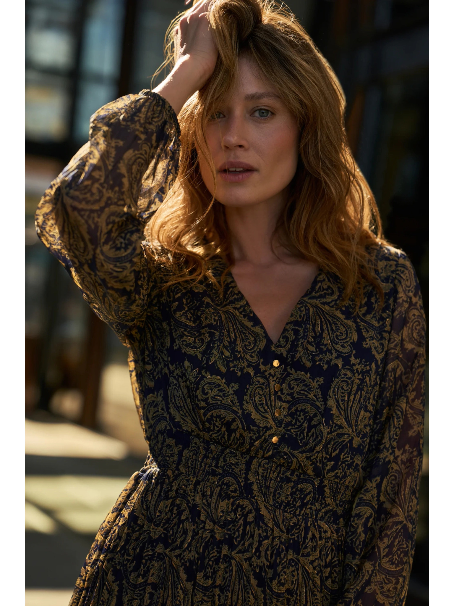 • modell méretei: A képen látható modell: magasság - 177 cm, méretek 87/63/90, méret a képen - felső rész - S, alsó rész - S