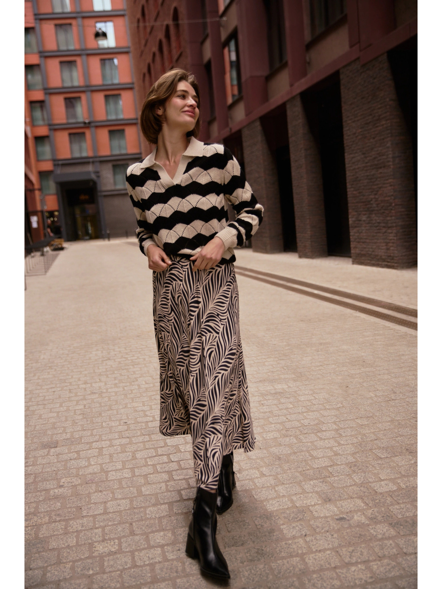 • modell méretei: A képen látható modell: magasság - 177,5 cm, méretek 84/64/91, méret a képen - felső rész - S, alsó rész - S
