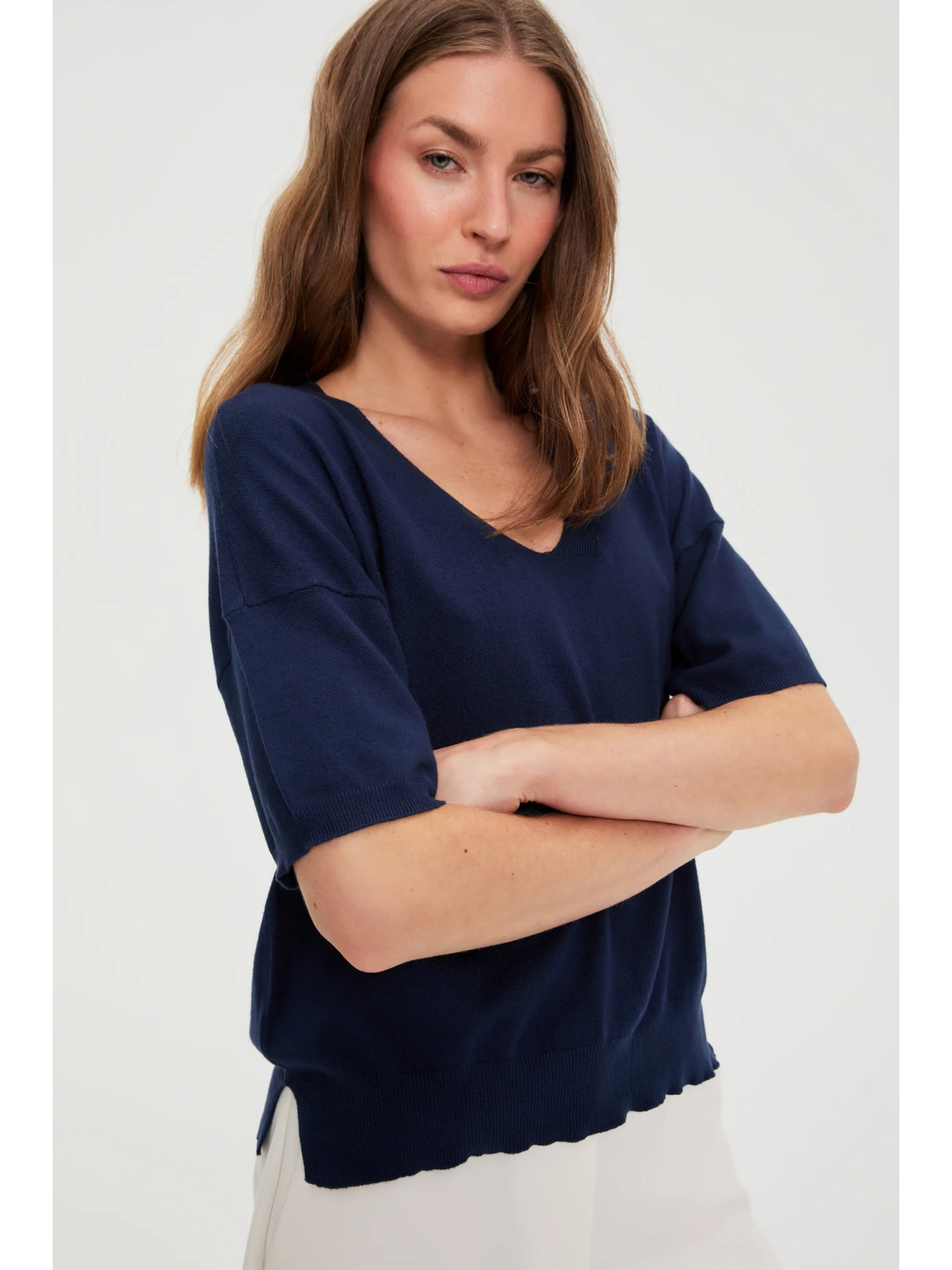 Sötétkék rövid ujjú pulóver Moodo