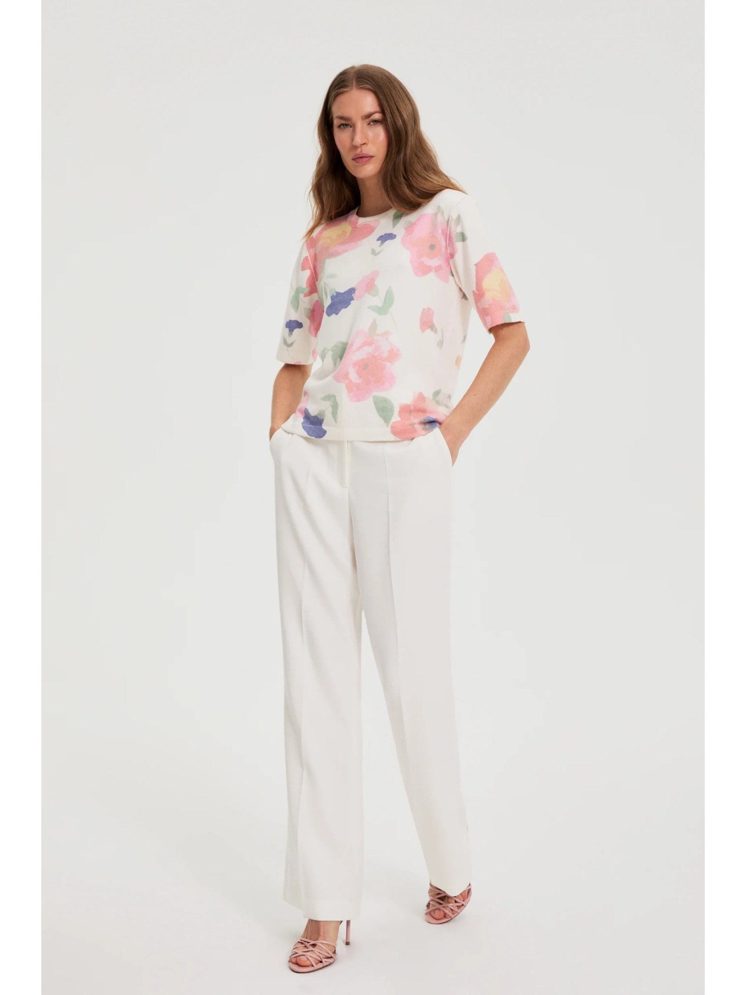 Női póló díszített nyakrésszel – fehér