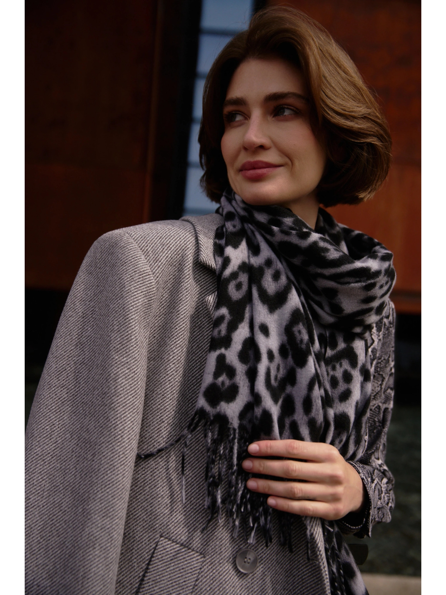 Szürke leopárd mintás sál Moodo