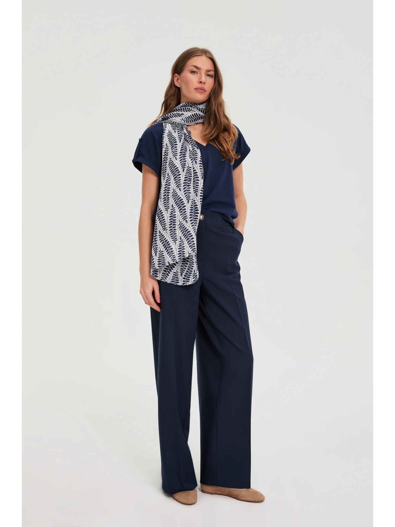 Sötétkék virágmintás sál Moodo