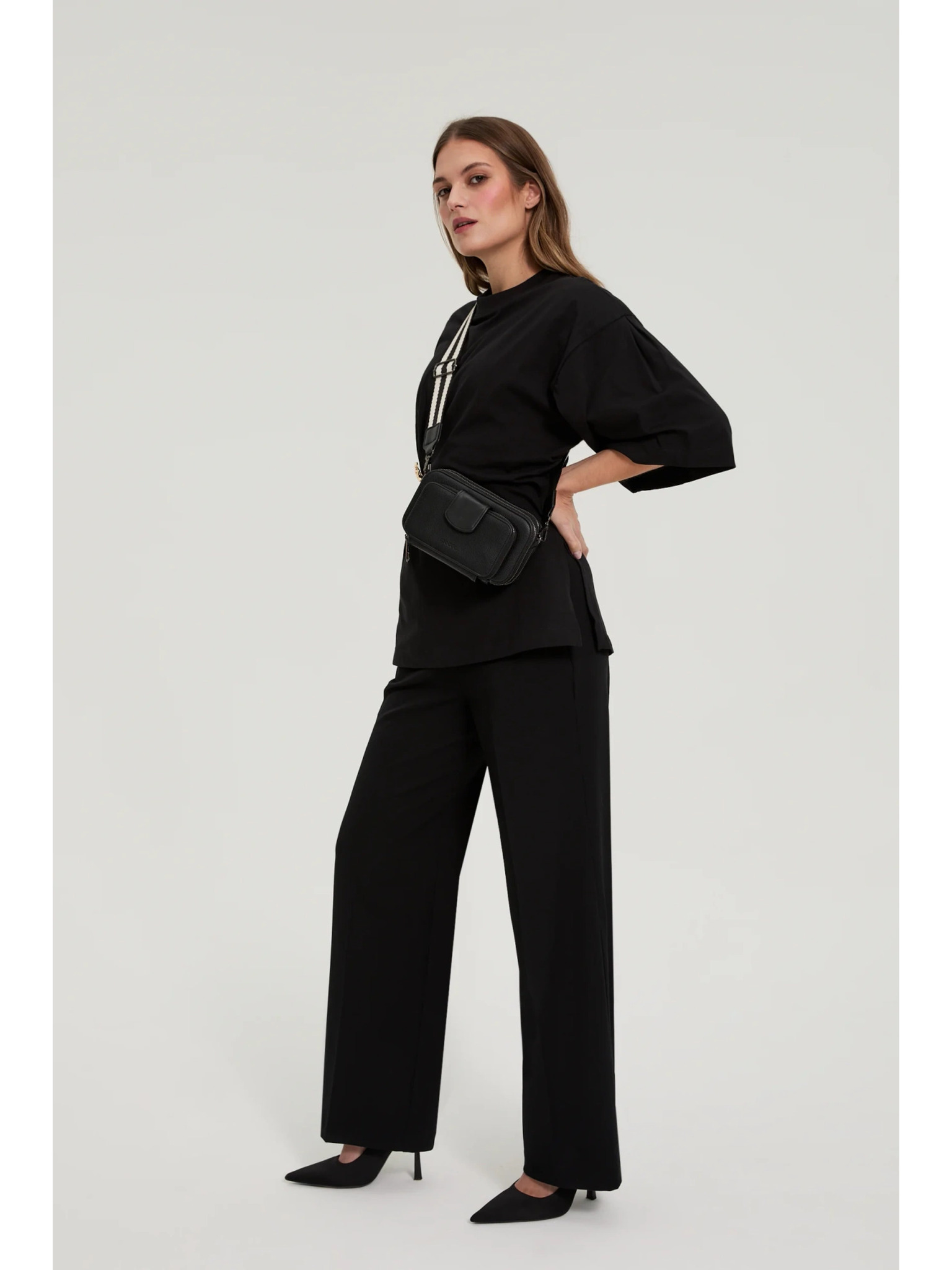 Fekete táska széles pánttal Moodo