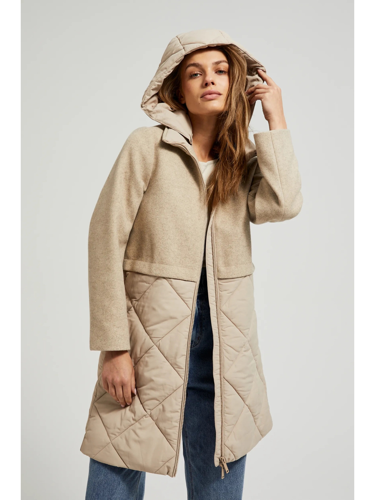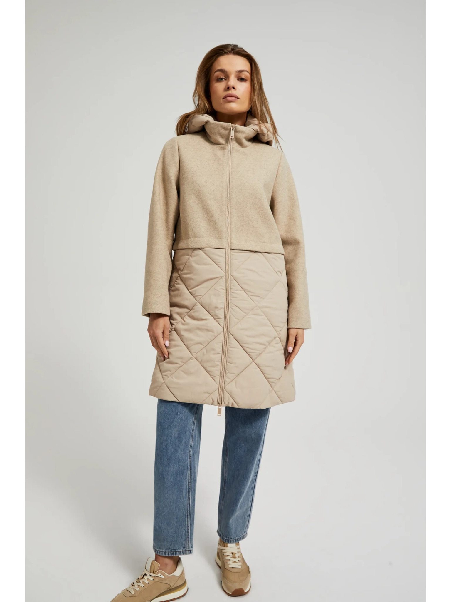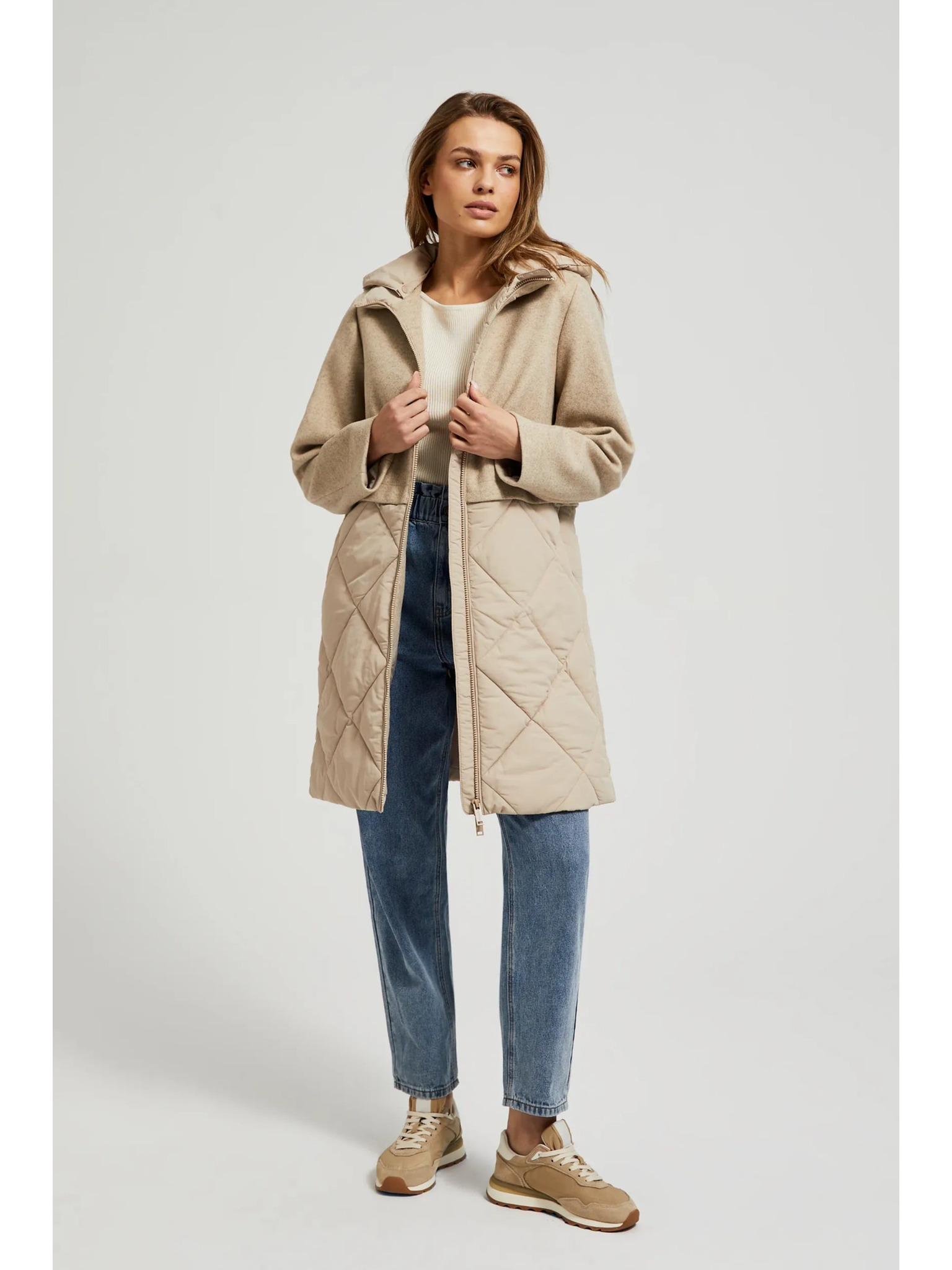 Bézs színű női téli steppelt kabát NAX ZARGA