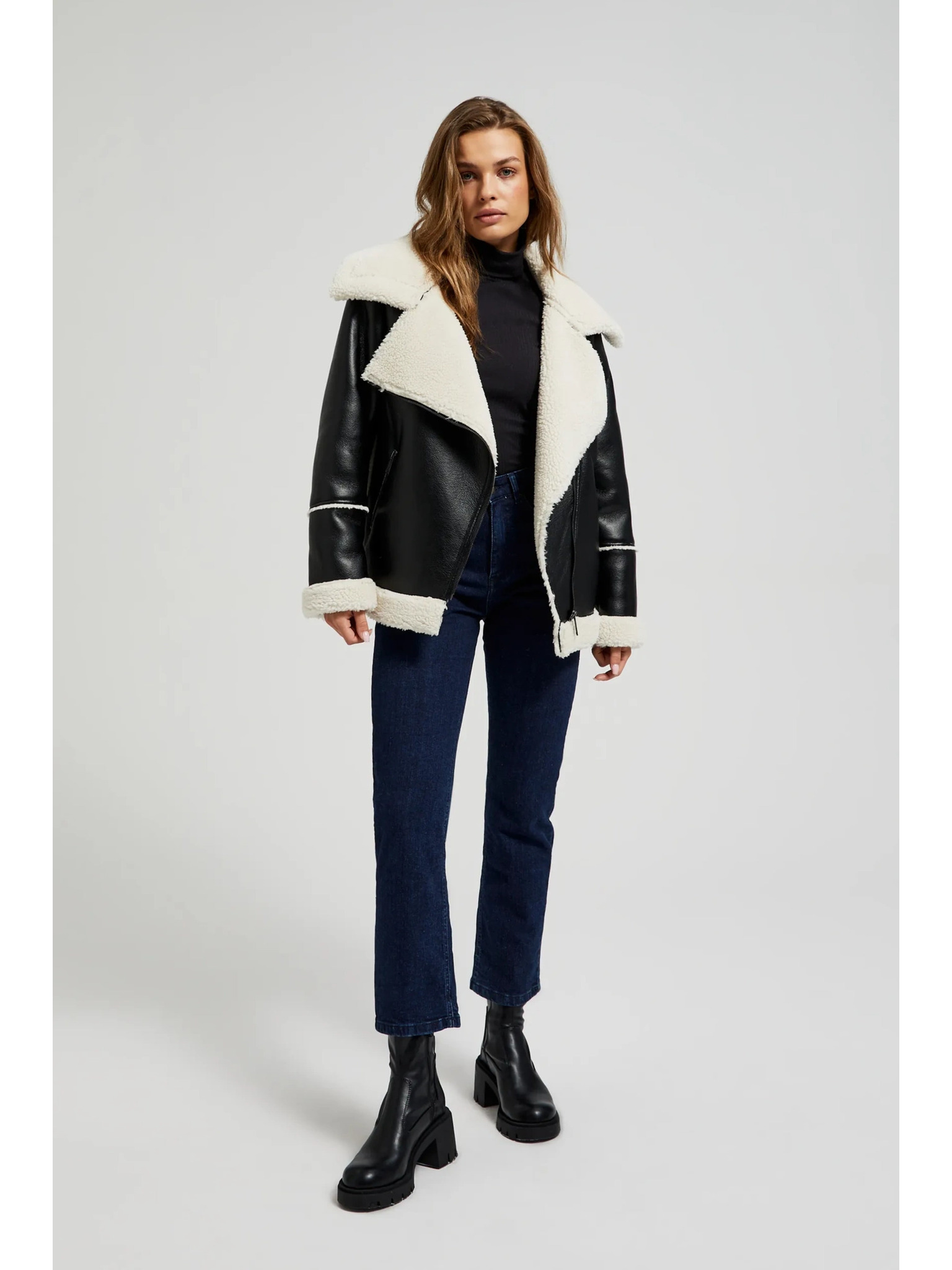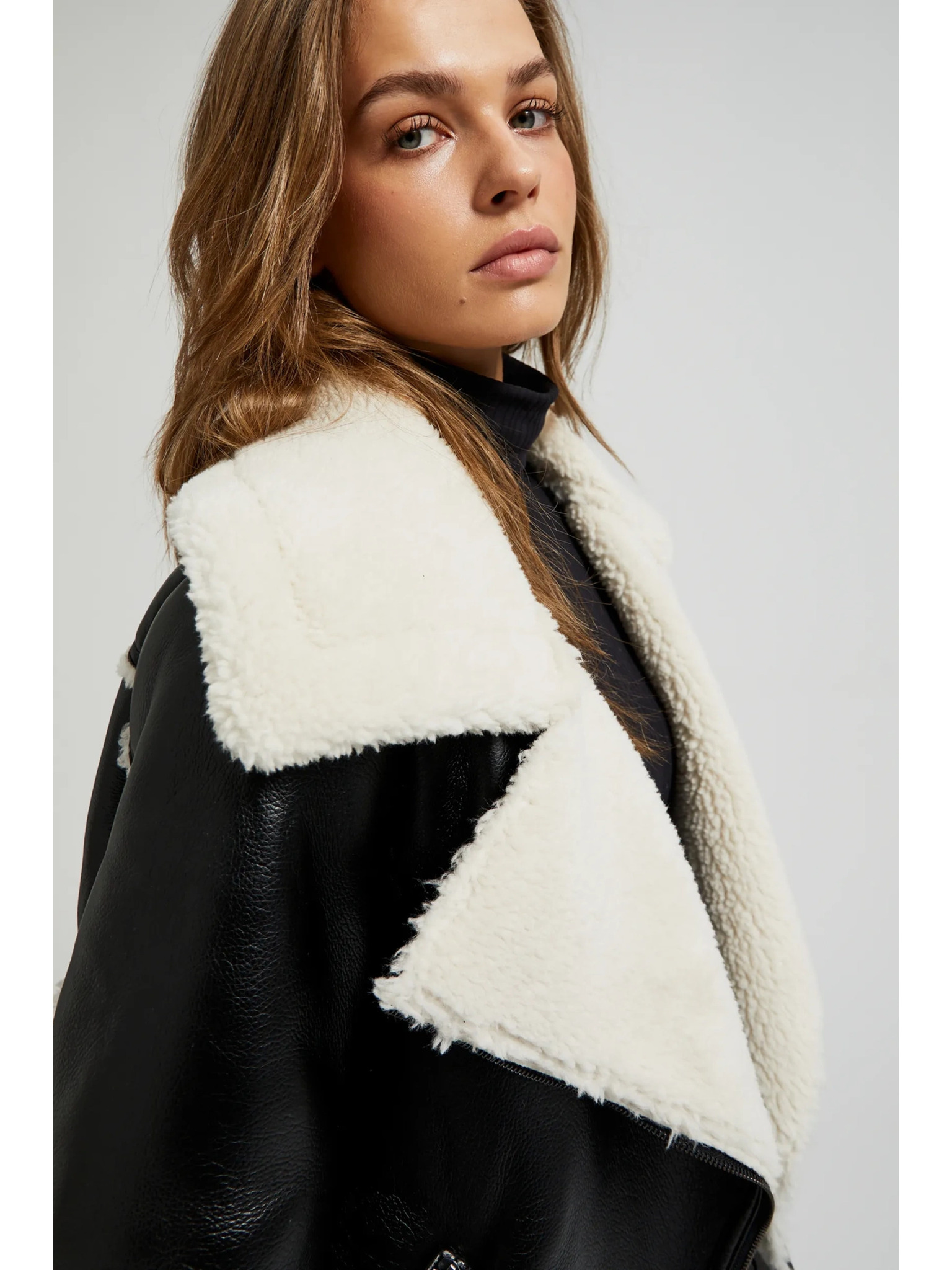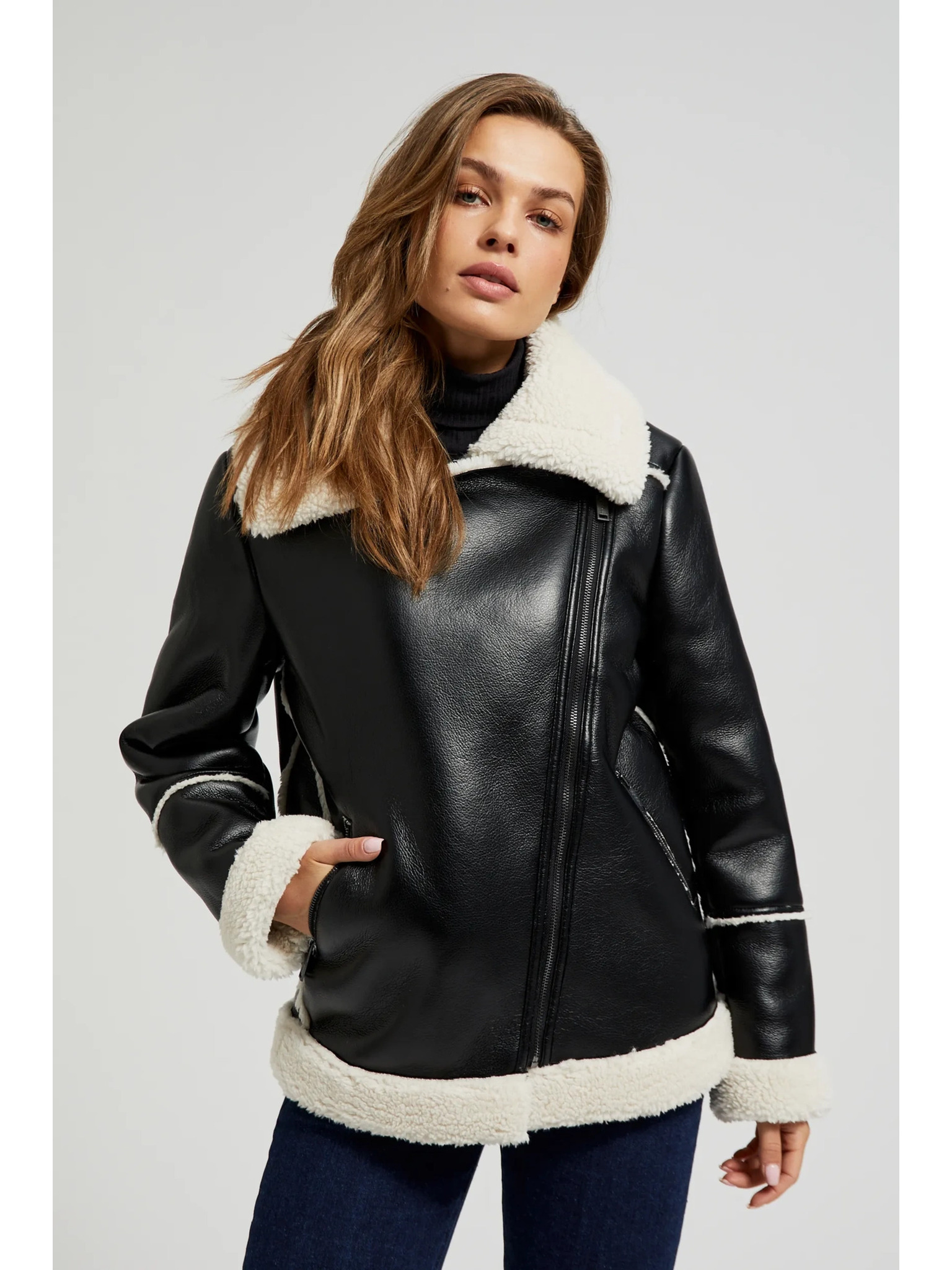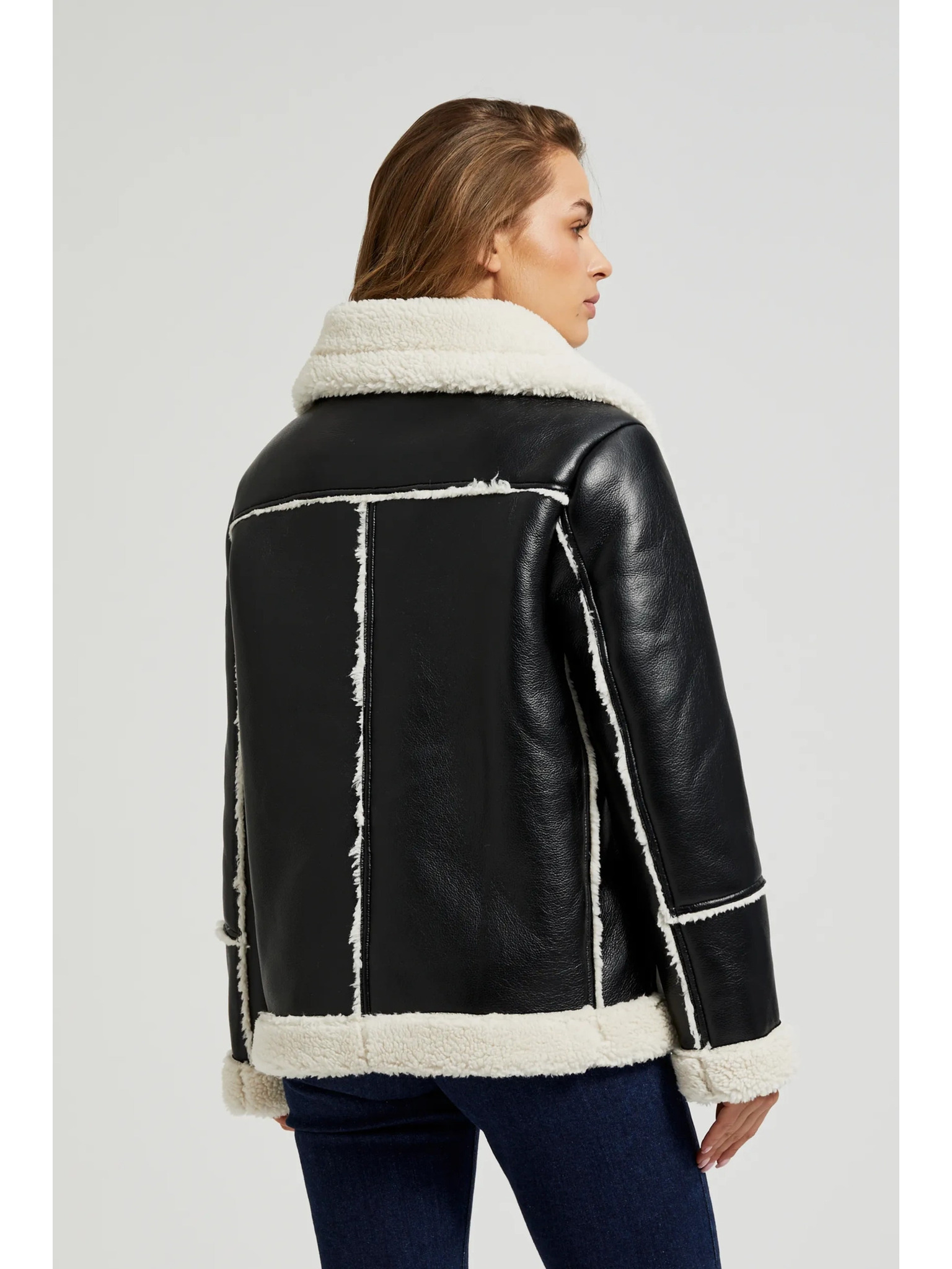 ORSAY Fekete női műbőr dzseki szőrmével