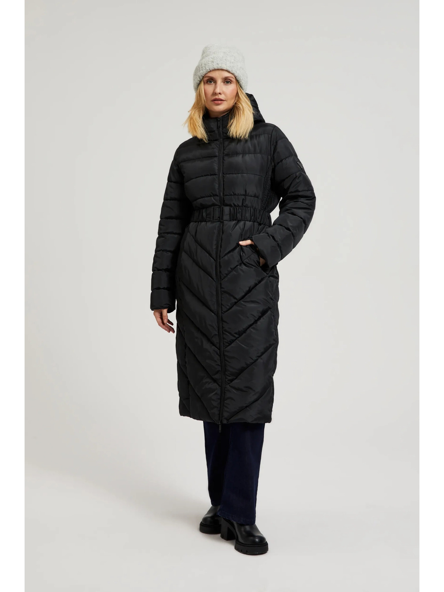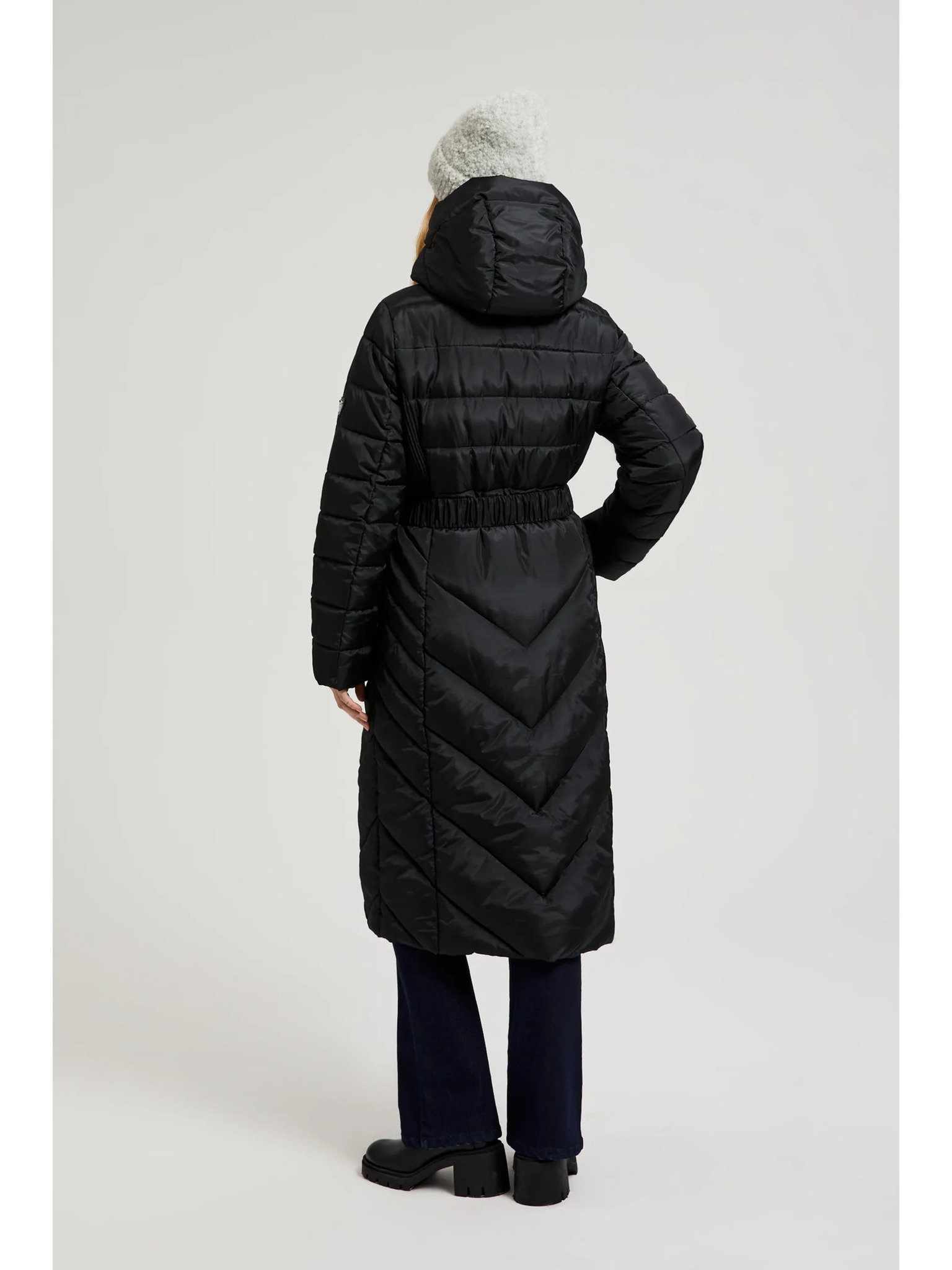 Moodo fekete steppelt kapucnis kabát