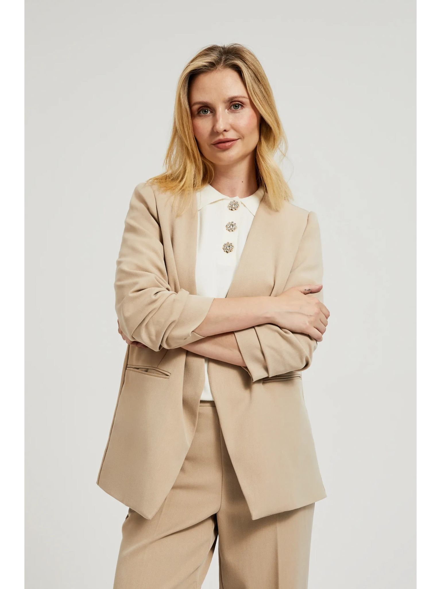 Moodo bézs színű női blézer