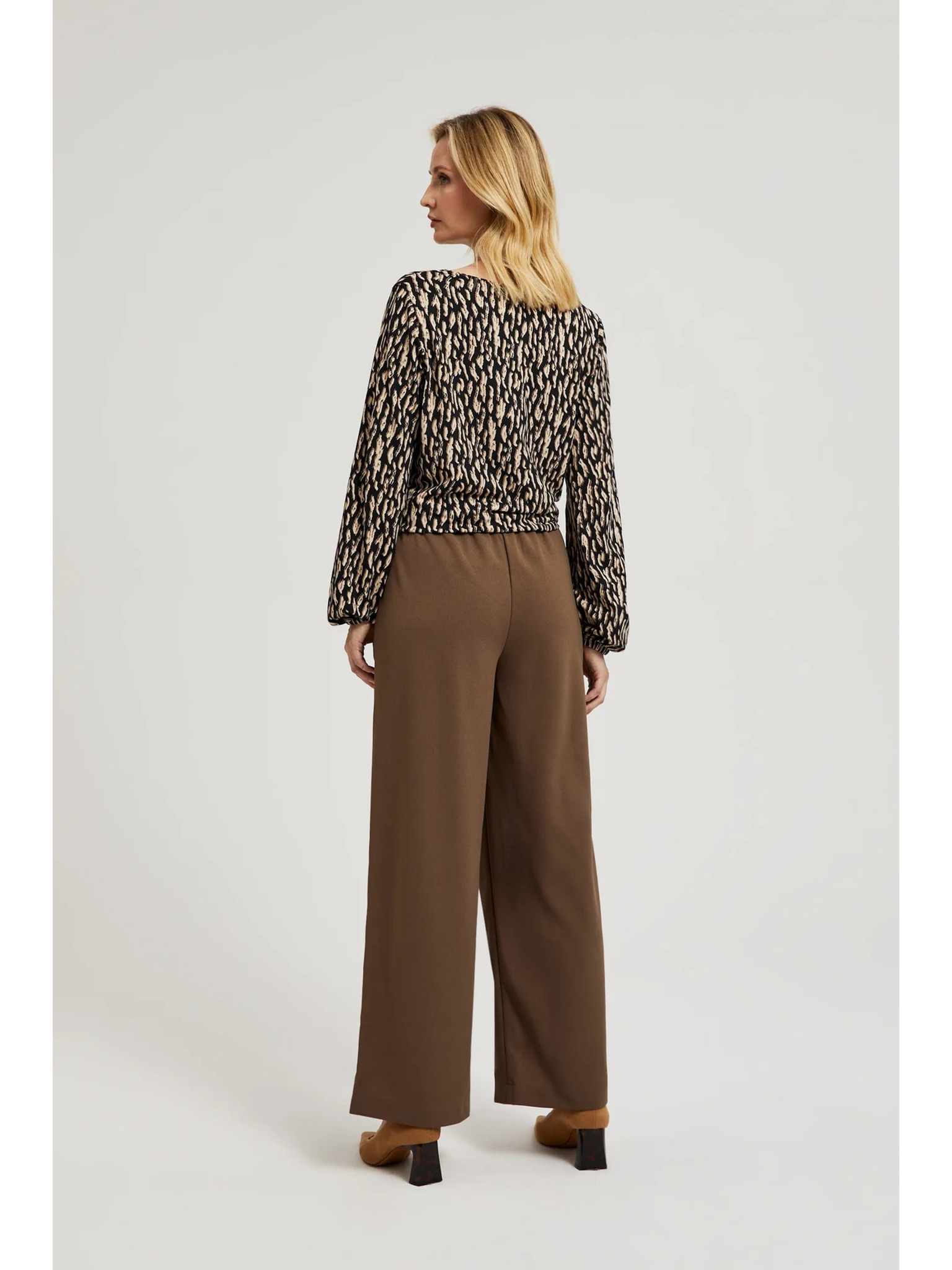 Krepp nadrág széles szárral és rugalmas derékkal Marks & Spencer barna
