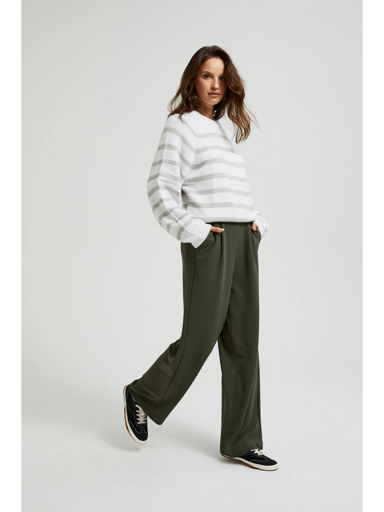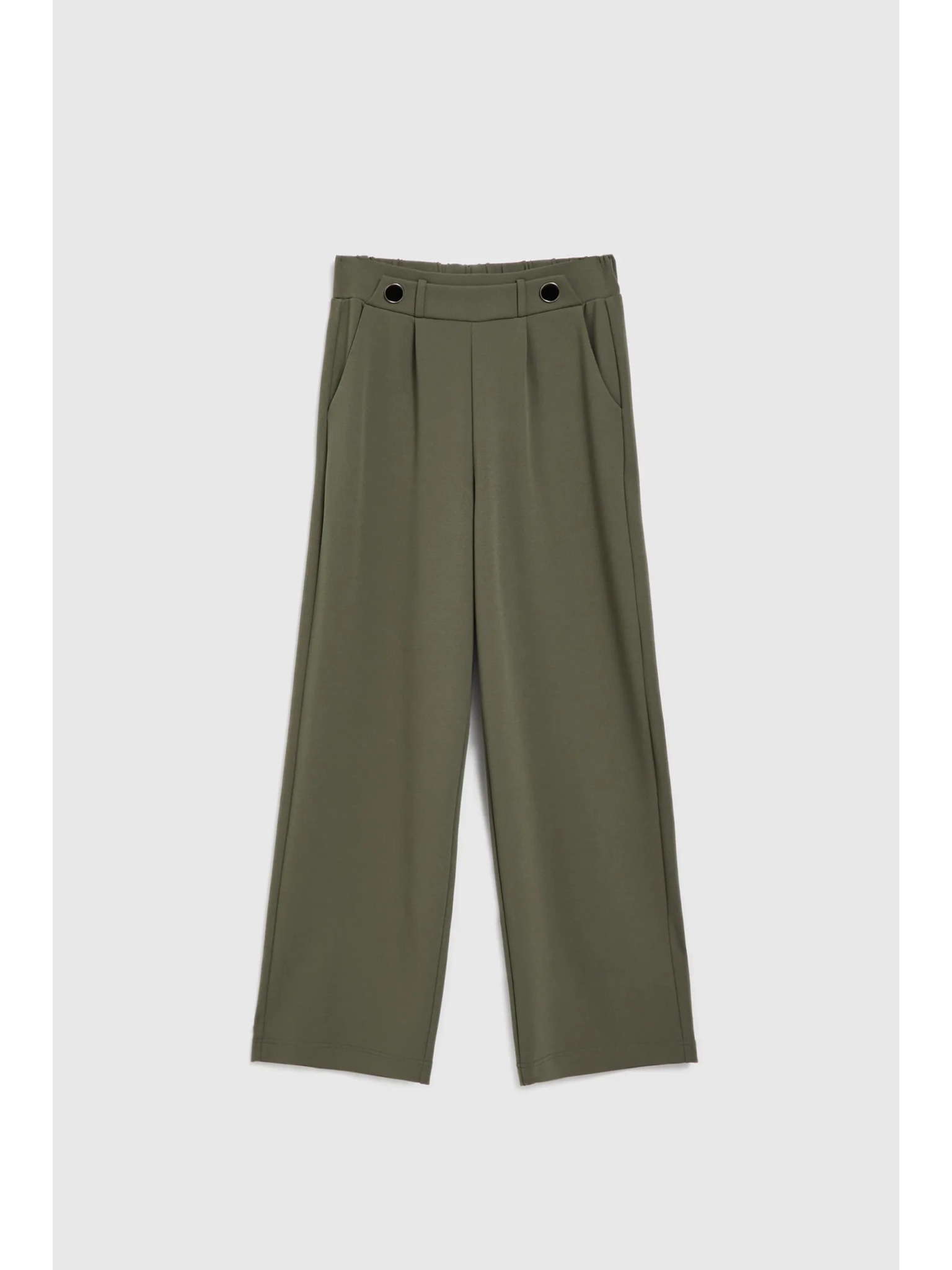 Olívazöld nadrág széles szárral és gumis derékkal Moodo