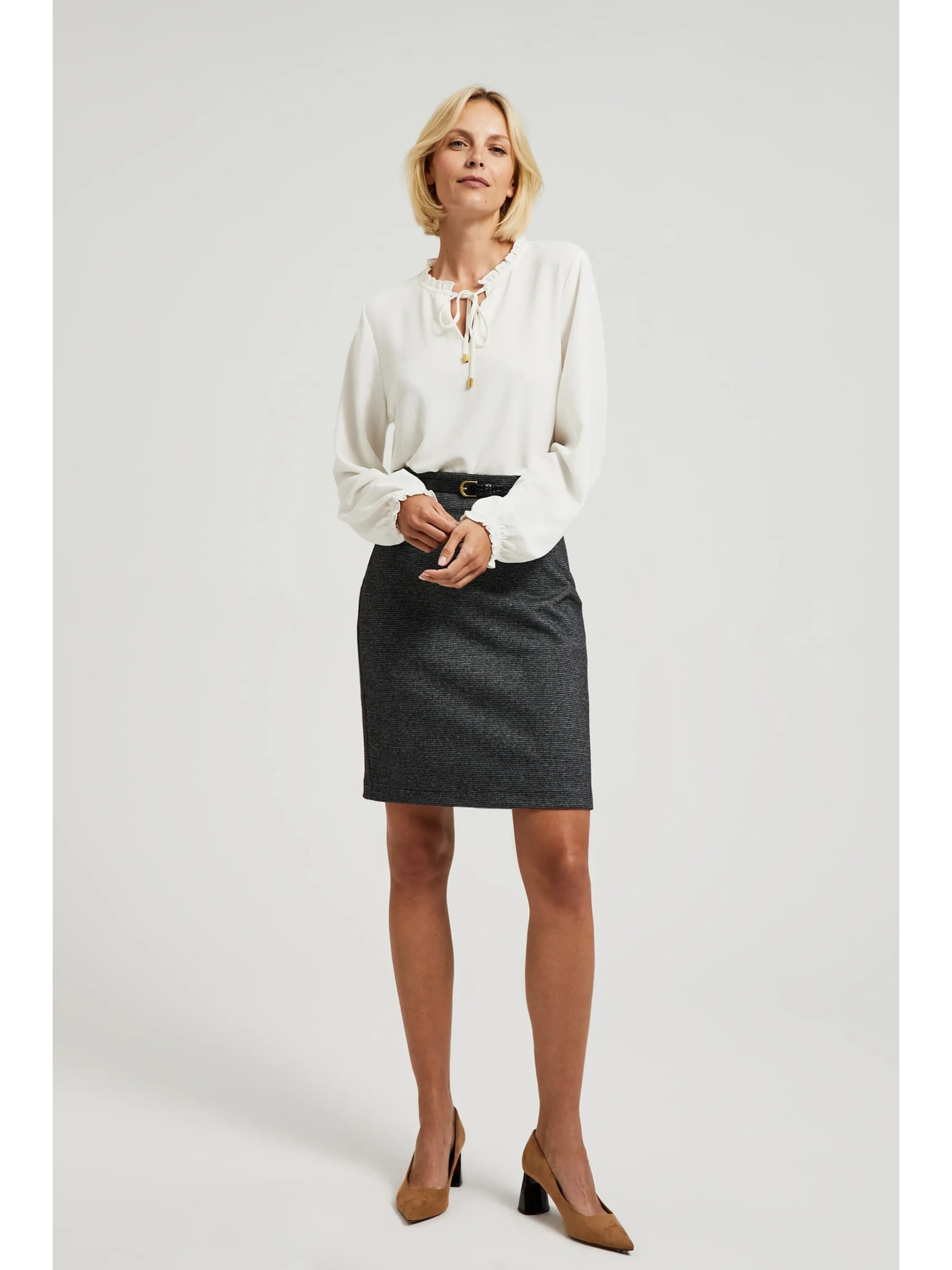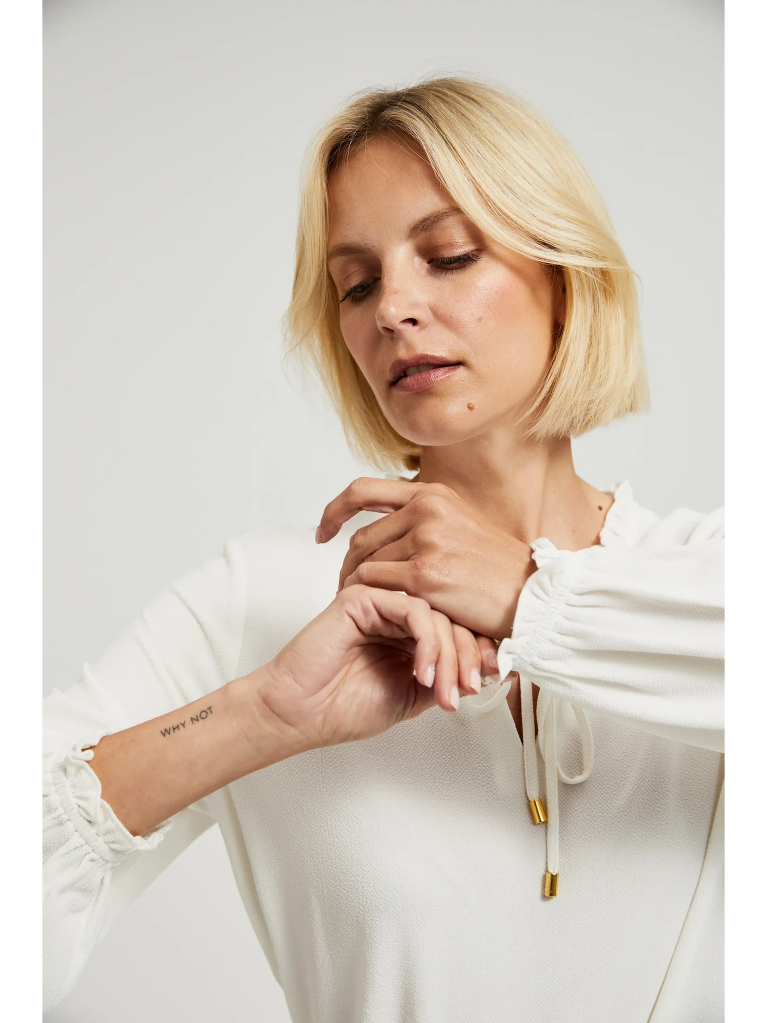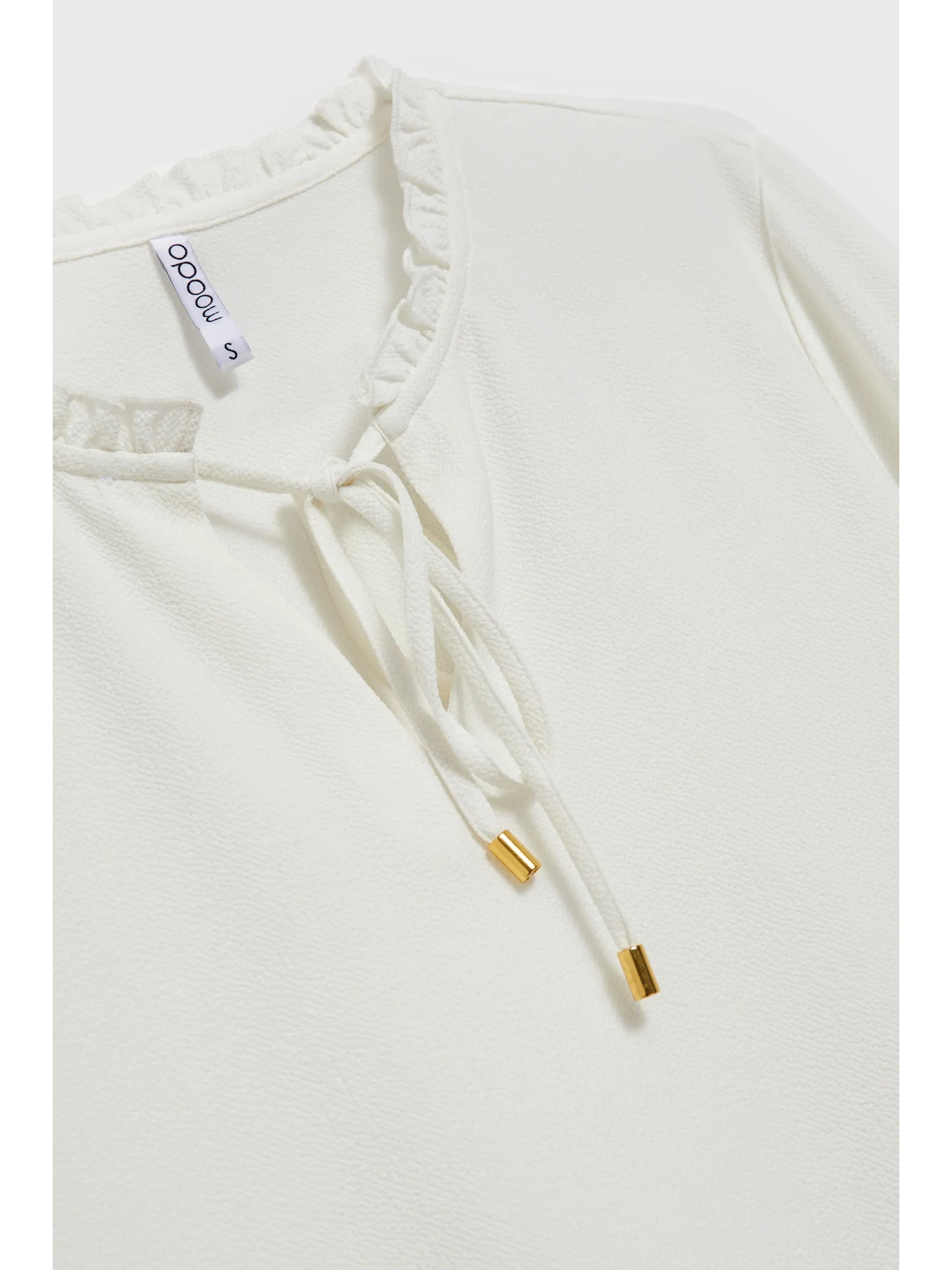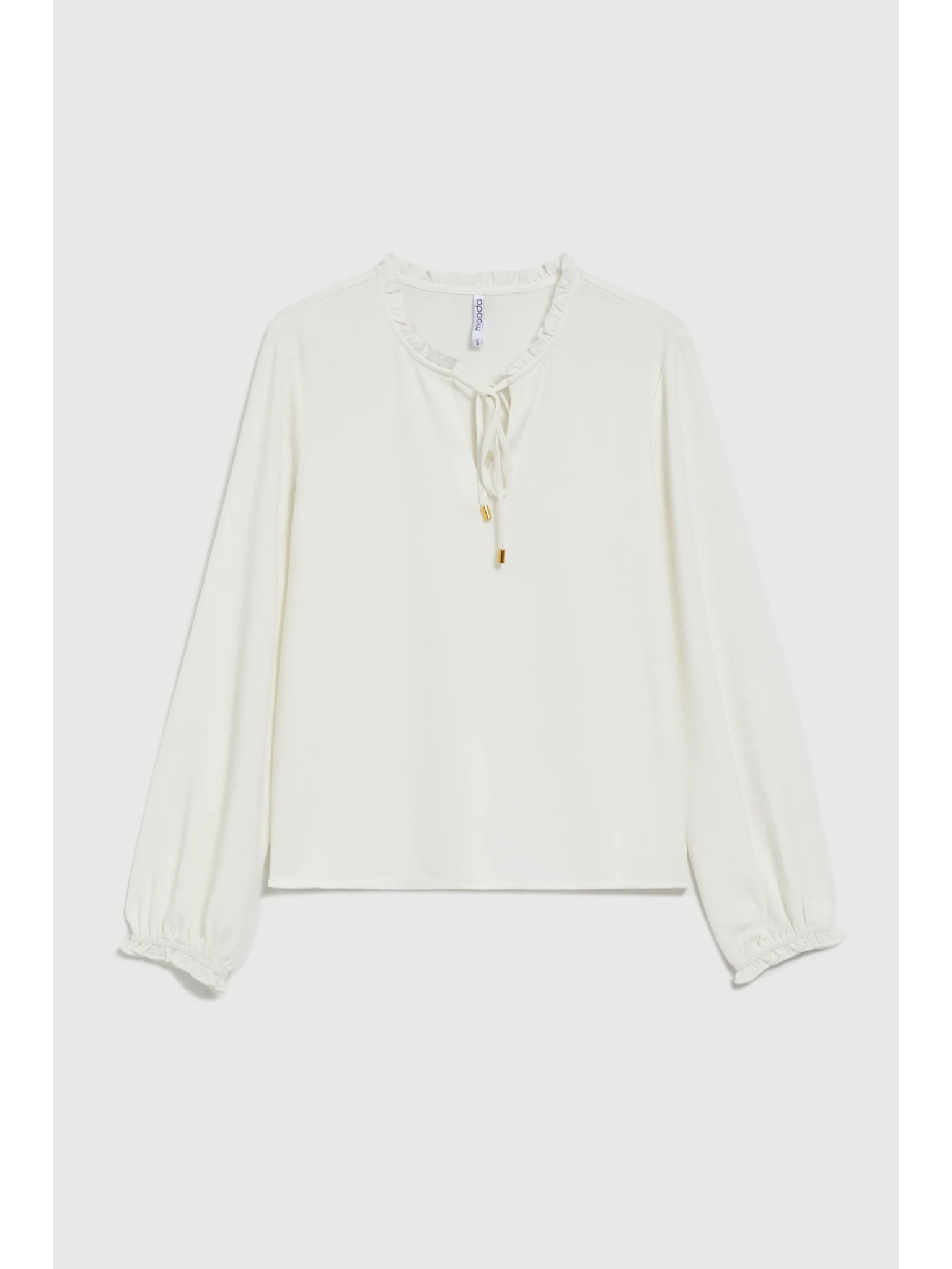 Fehér női blúz hosszú ujjakkal és elöl megkötővel Numoco