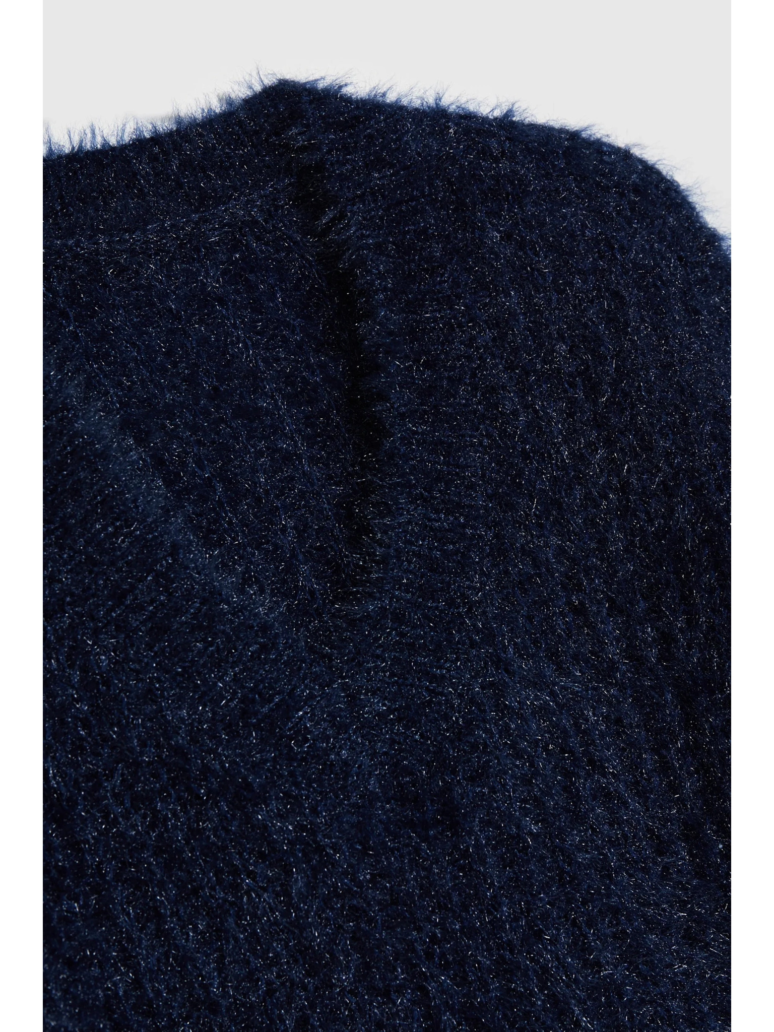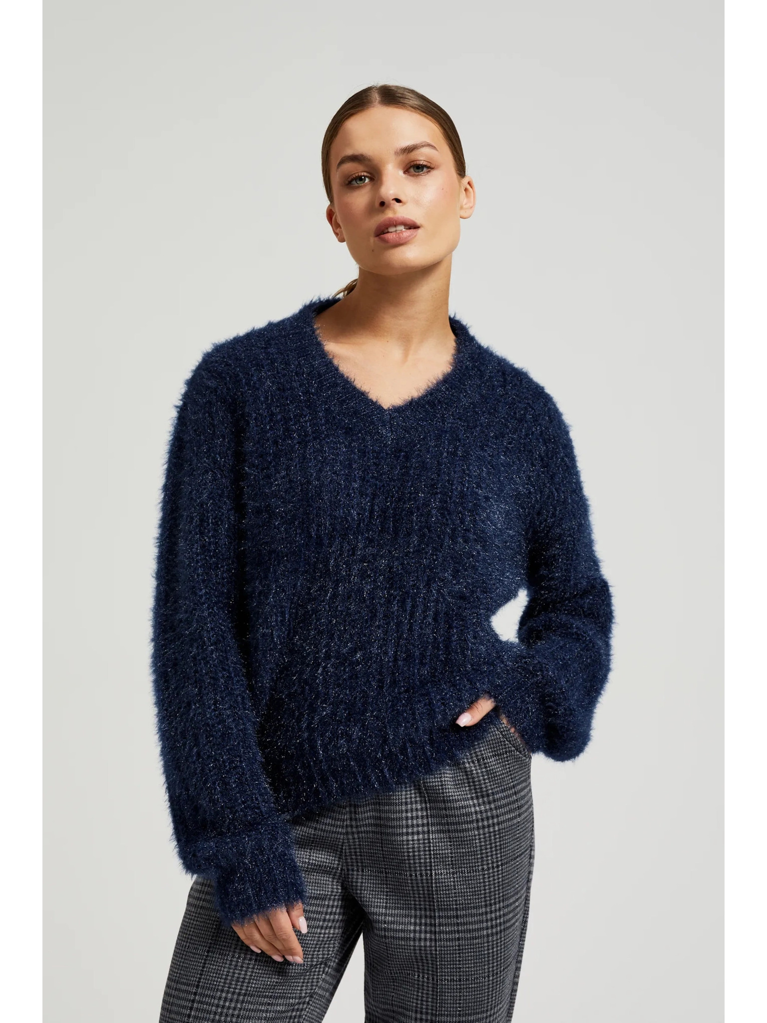 Sötétkék pulóver gallérral és metál fonallal Moodo
