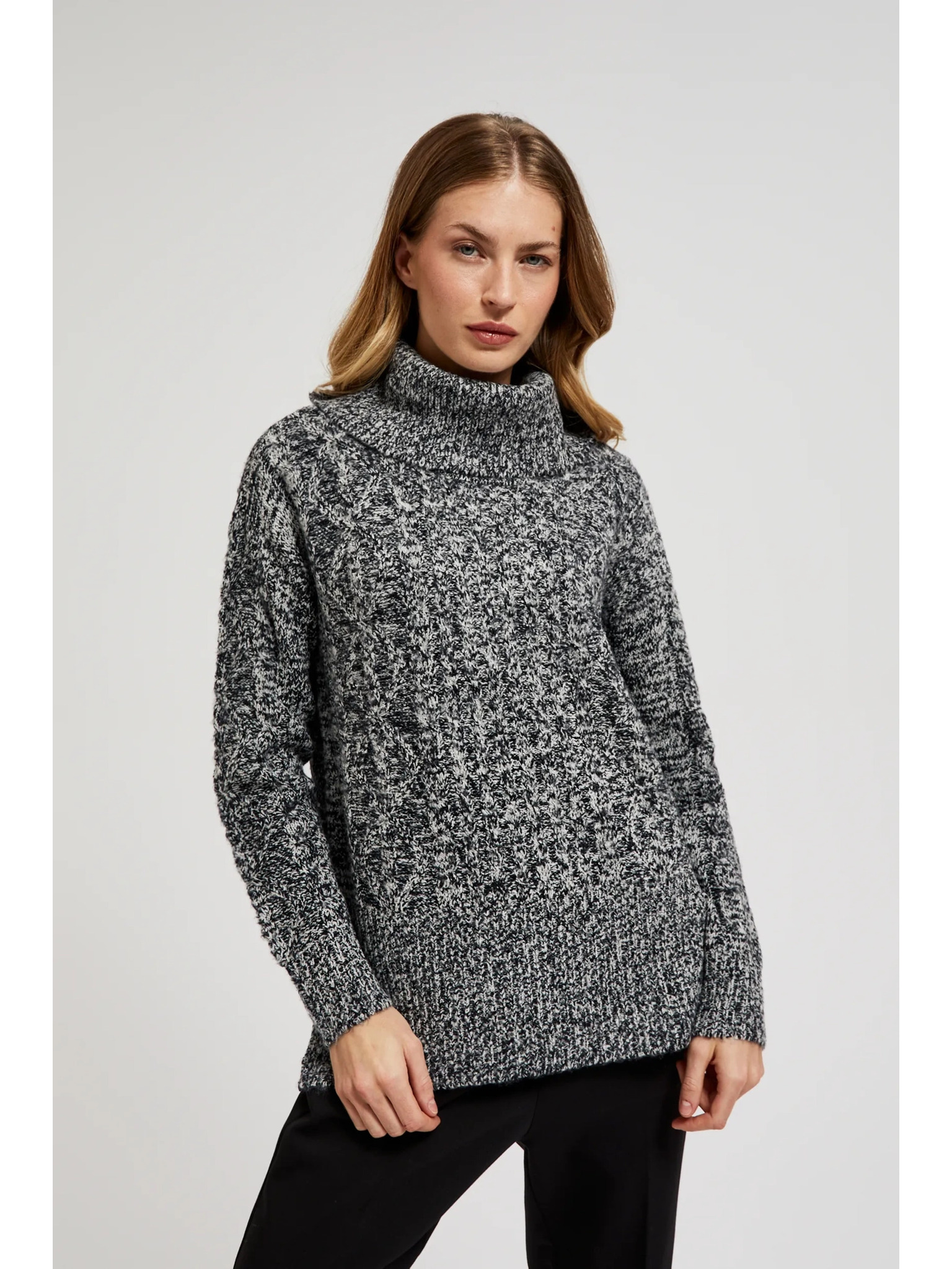 Egyszerű szabású pulóver fekete Moodo