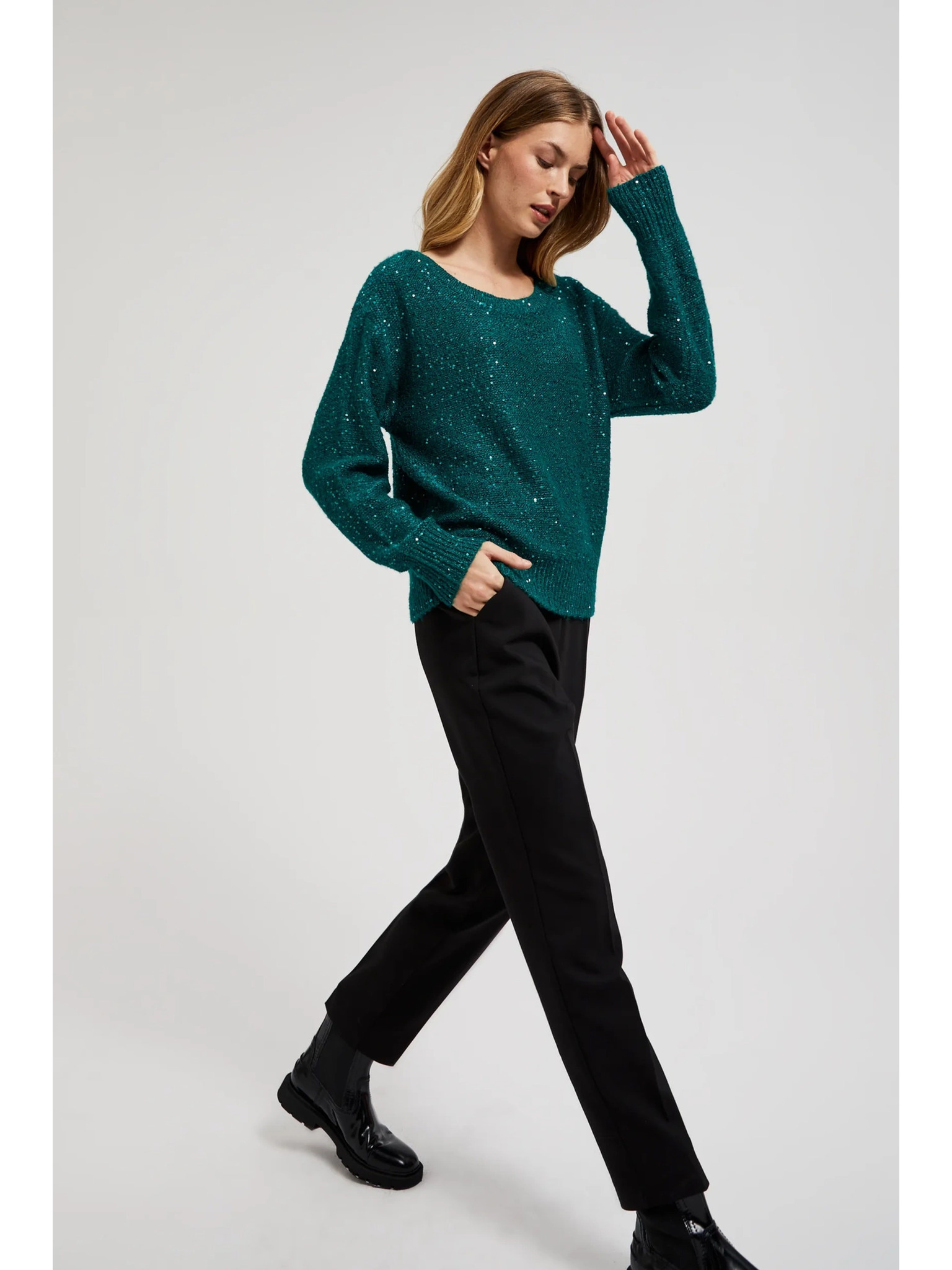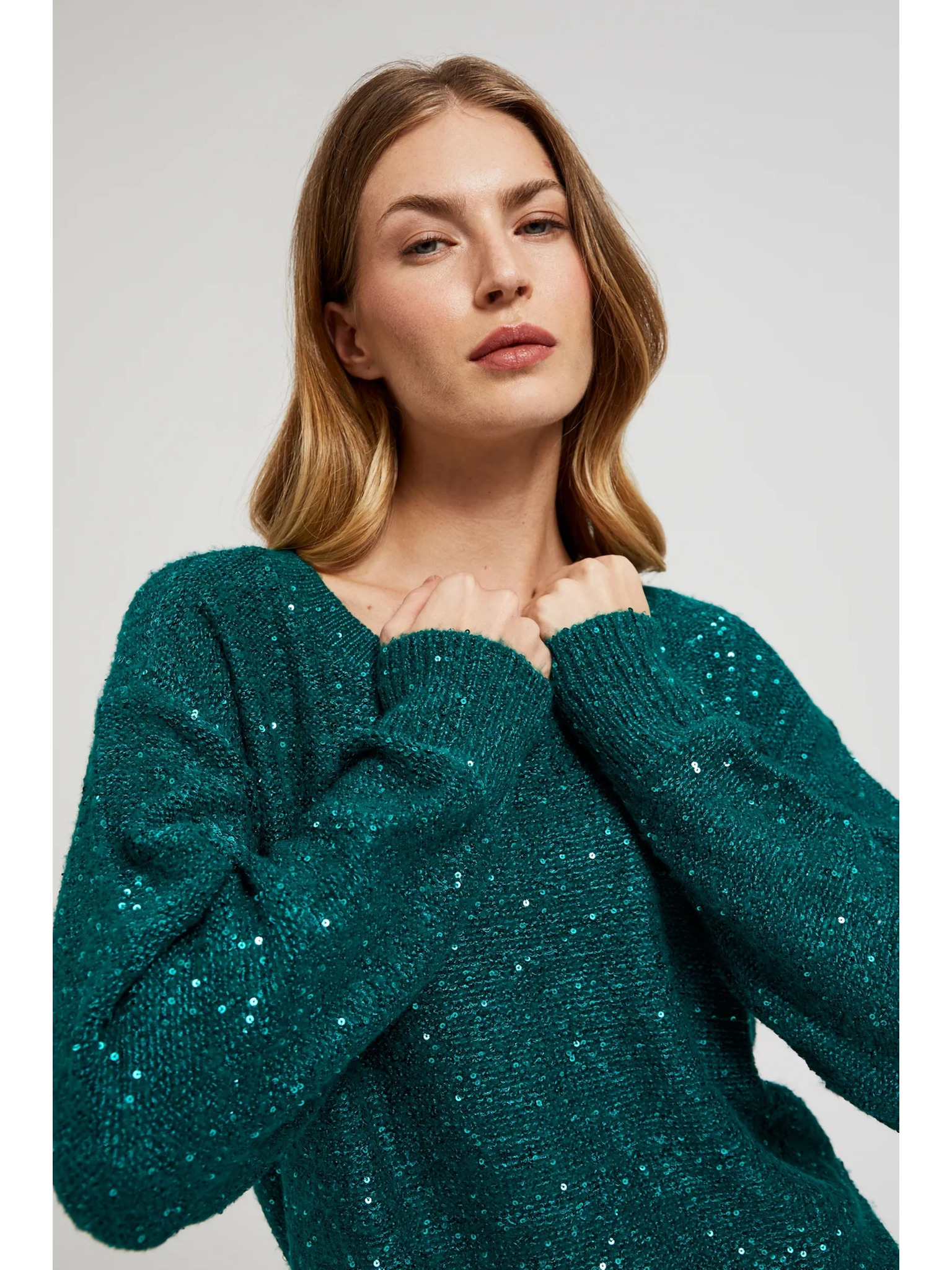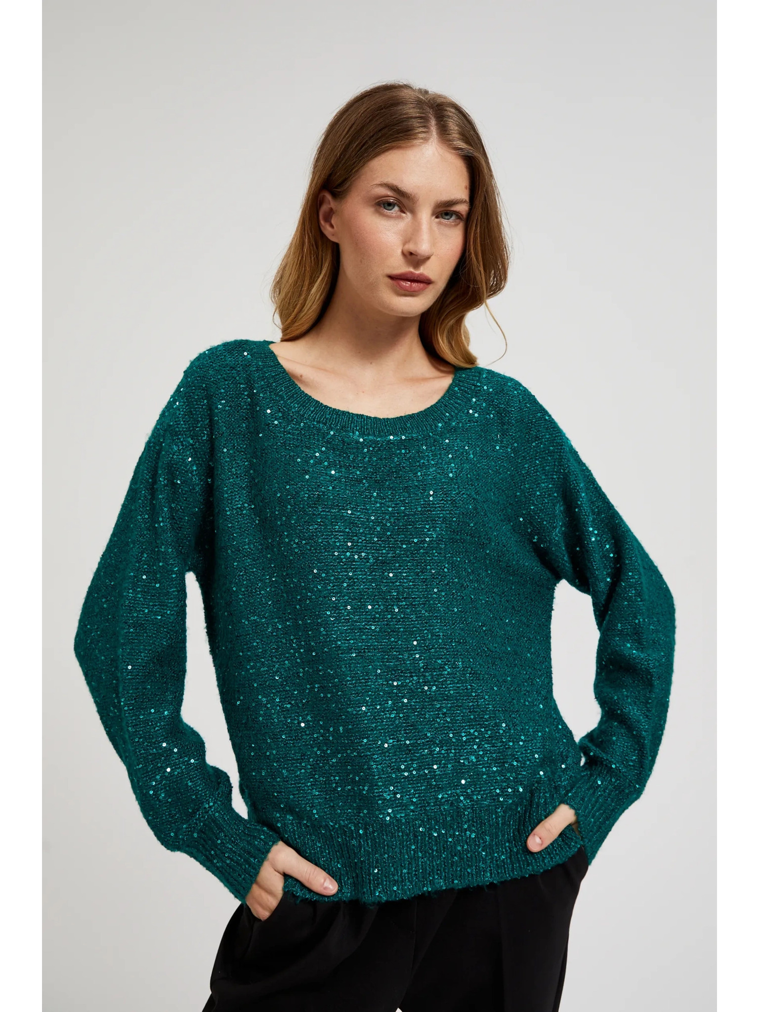 Zöld fémes szálú pulóver Moodo