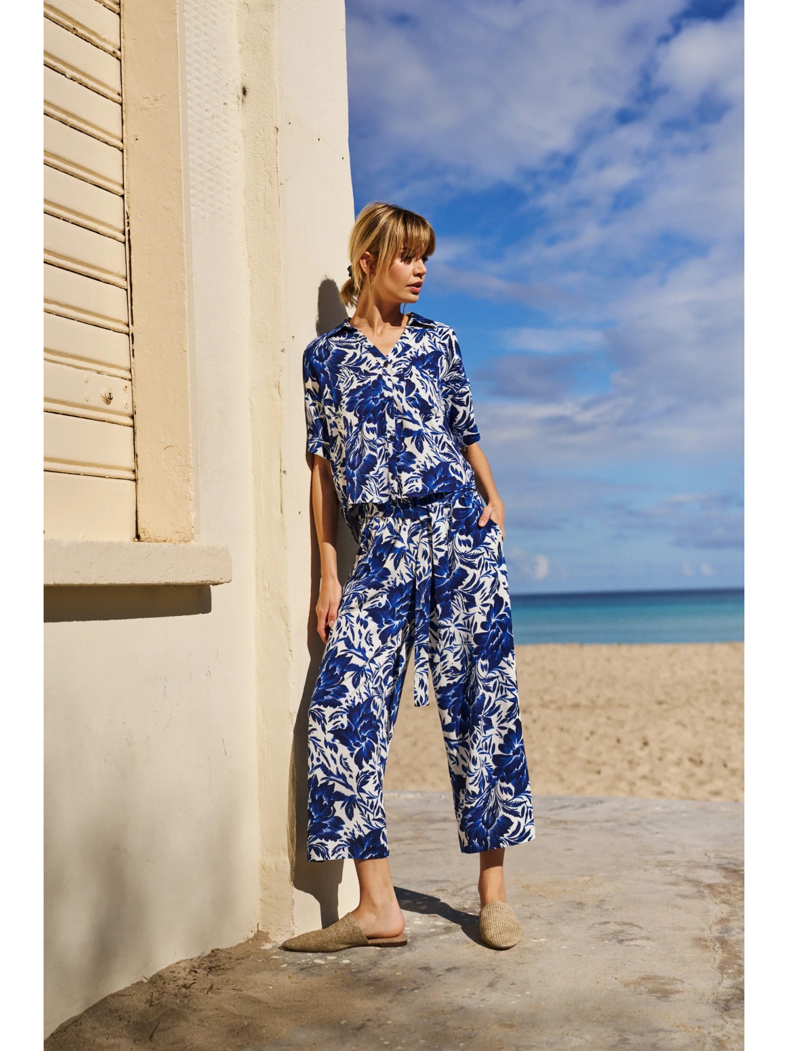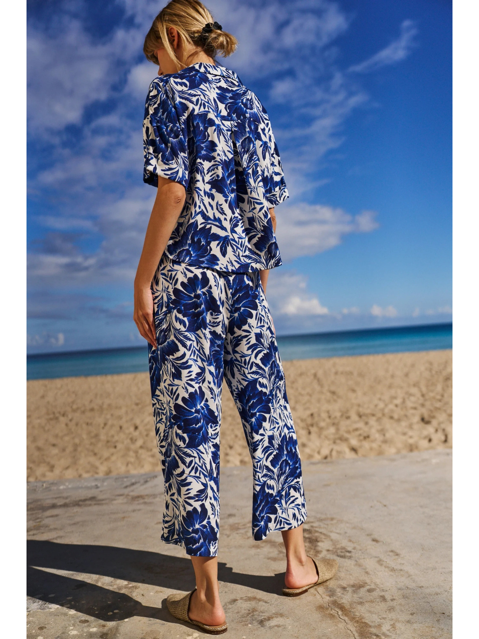 ORSAY sárga-kék virágmintás rövidített női nadrág