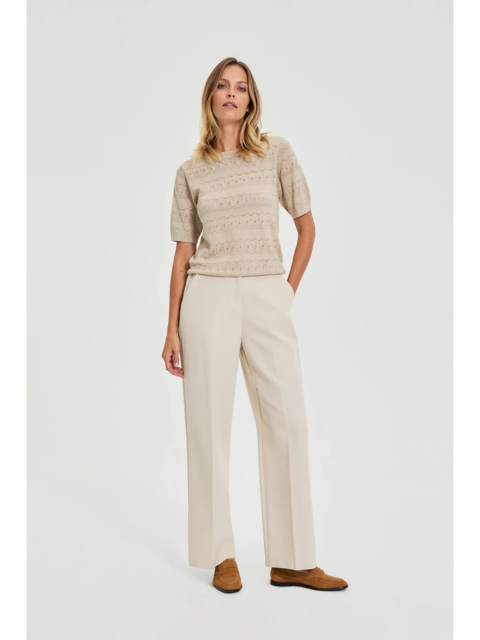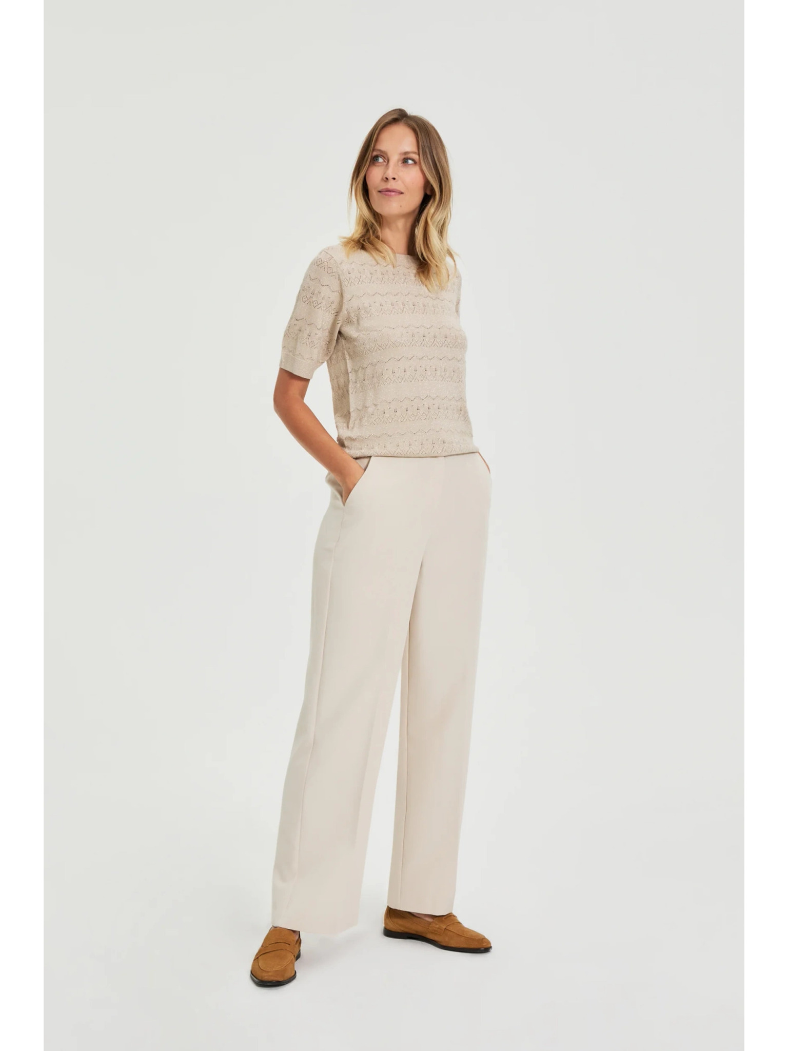 Bézs széles szárú nadrág Moodo