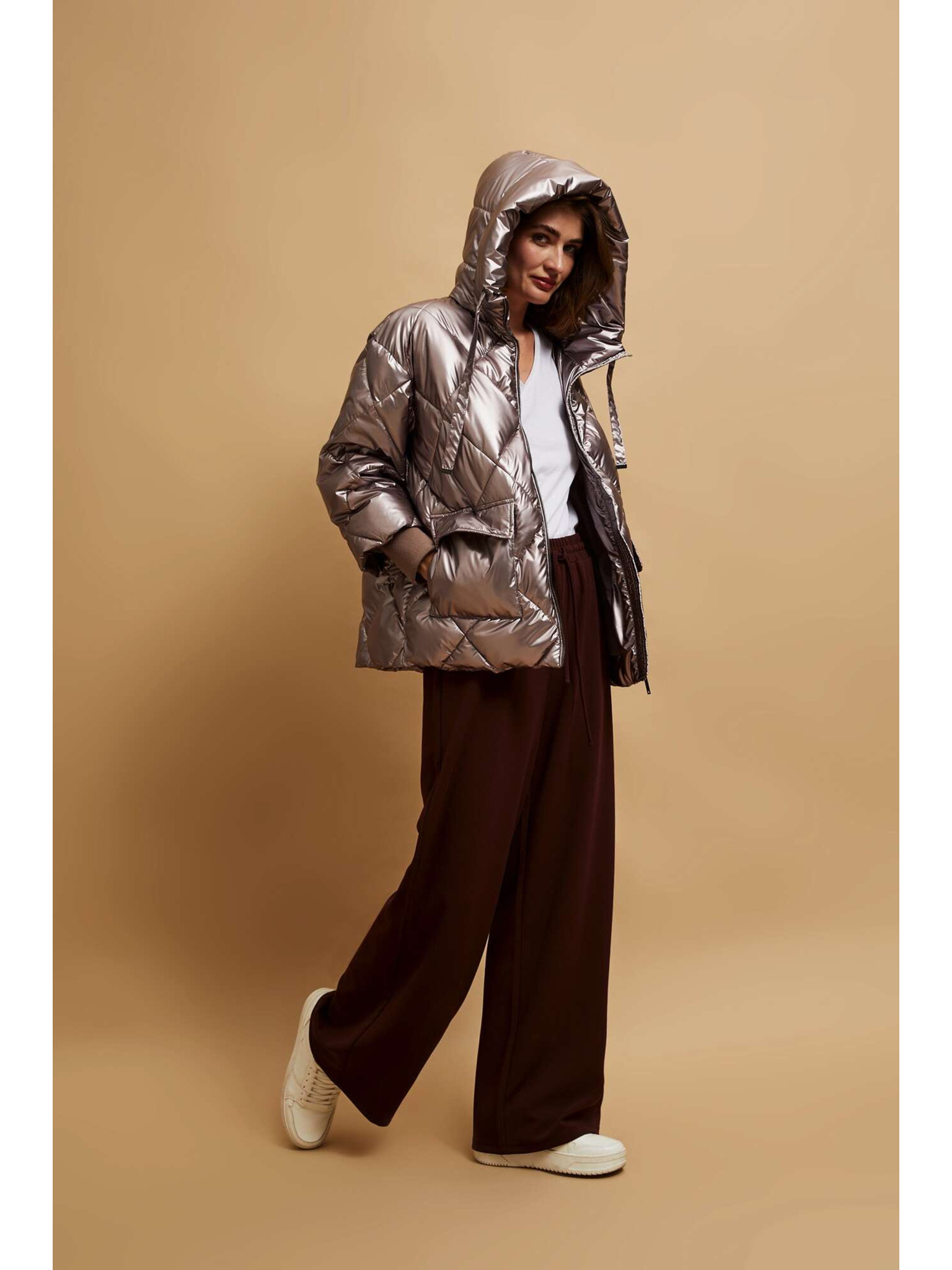 Moodo steppelt kapucnis bézs kabát