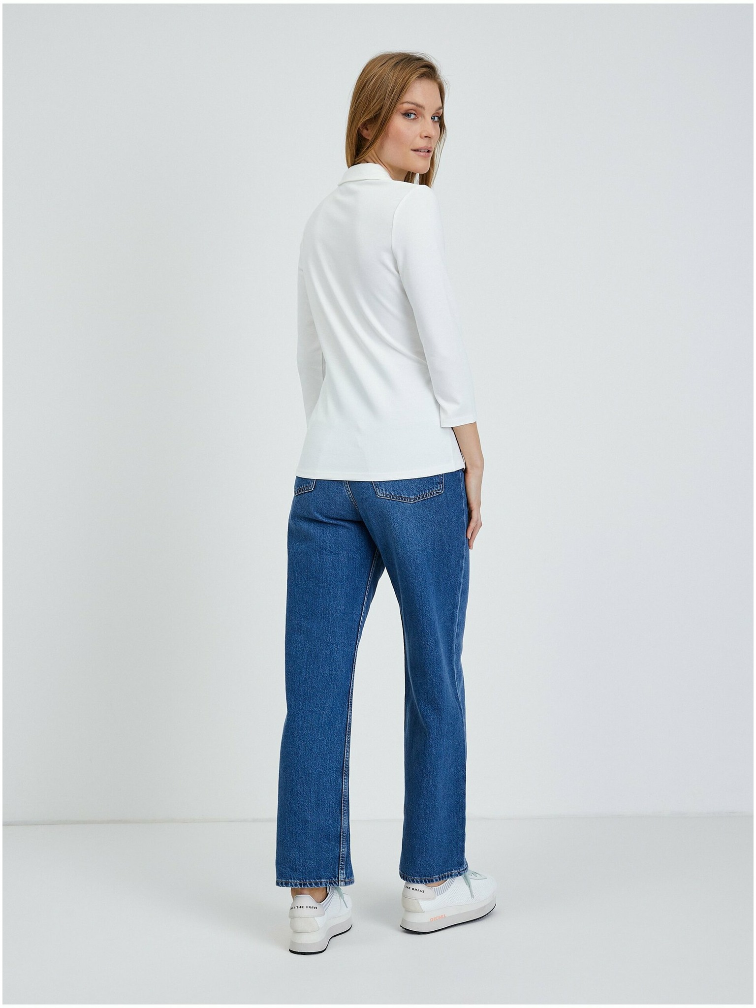 Fehér pamut pulóver V-nyakkivágással Moodo