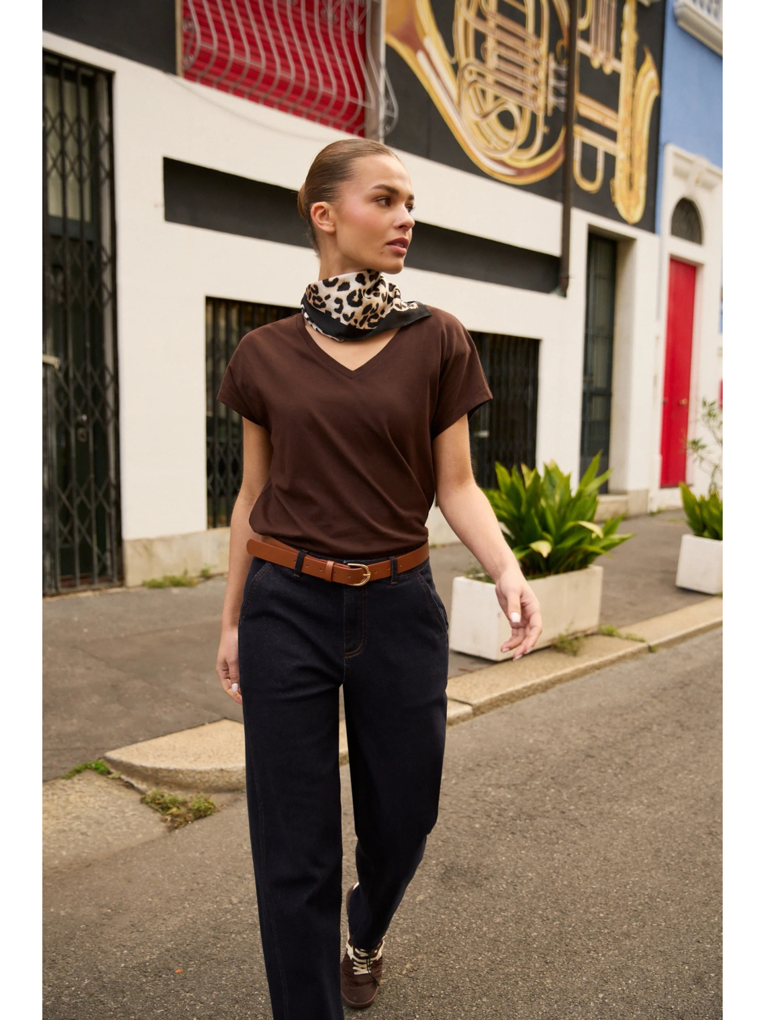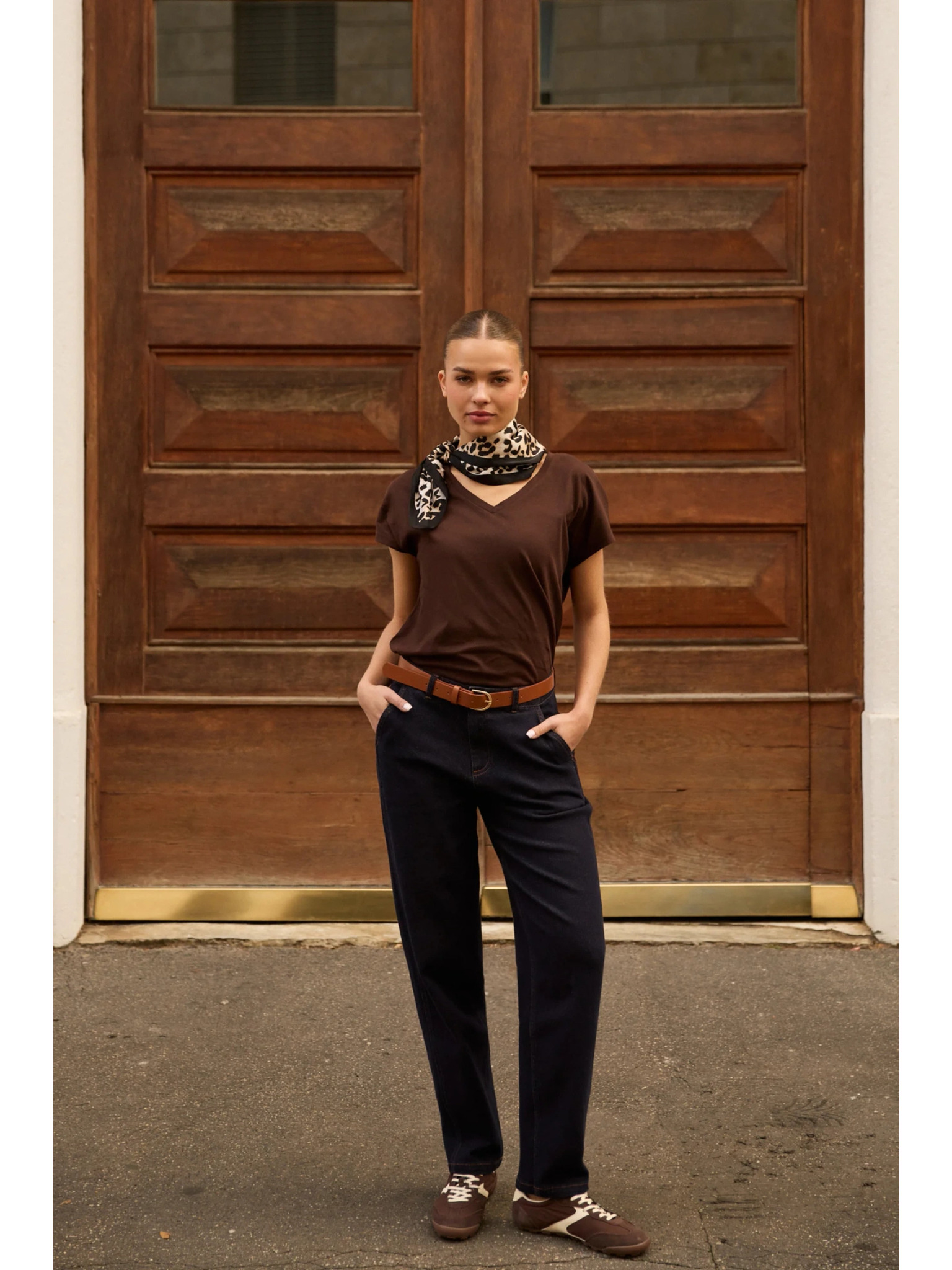 Barna top V-nyakkivágással Moodo