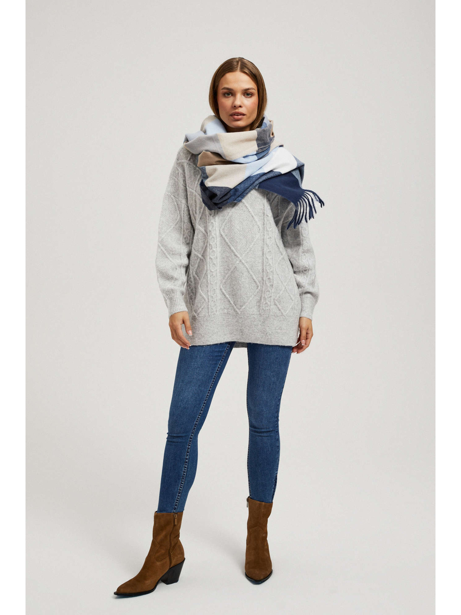 Bézs kockás sál Moodo