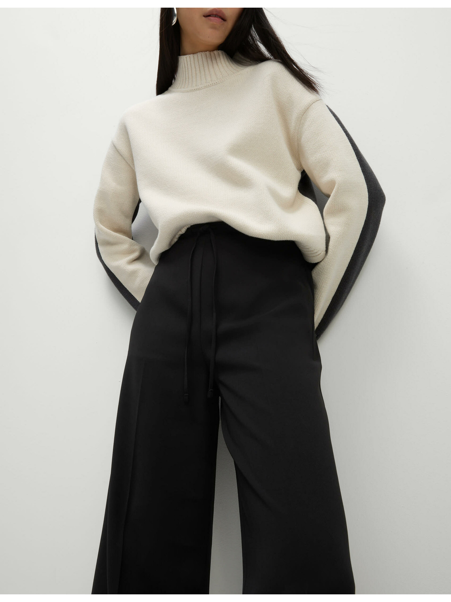 Zsinórral húzható derekú bő szárú farmer Marks & Spencer fekete