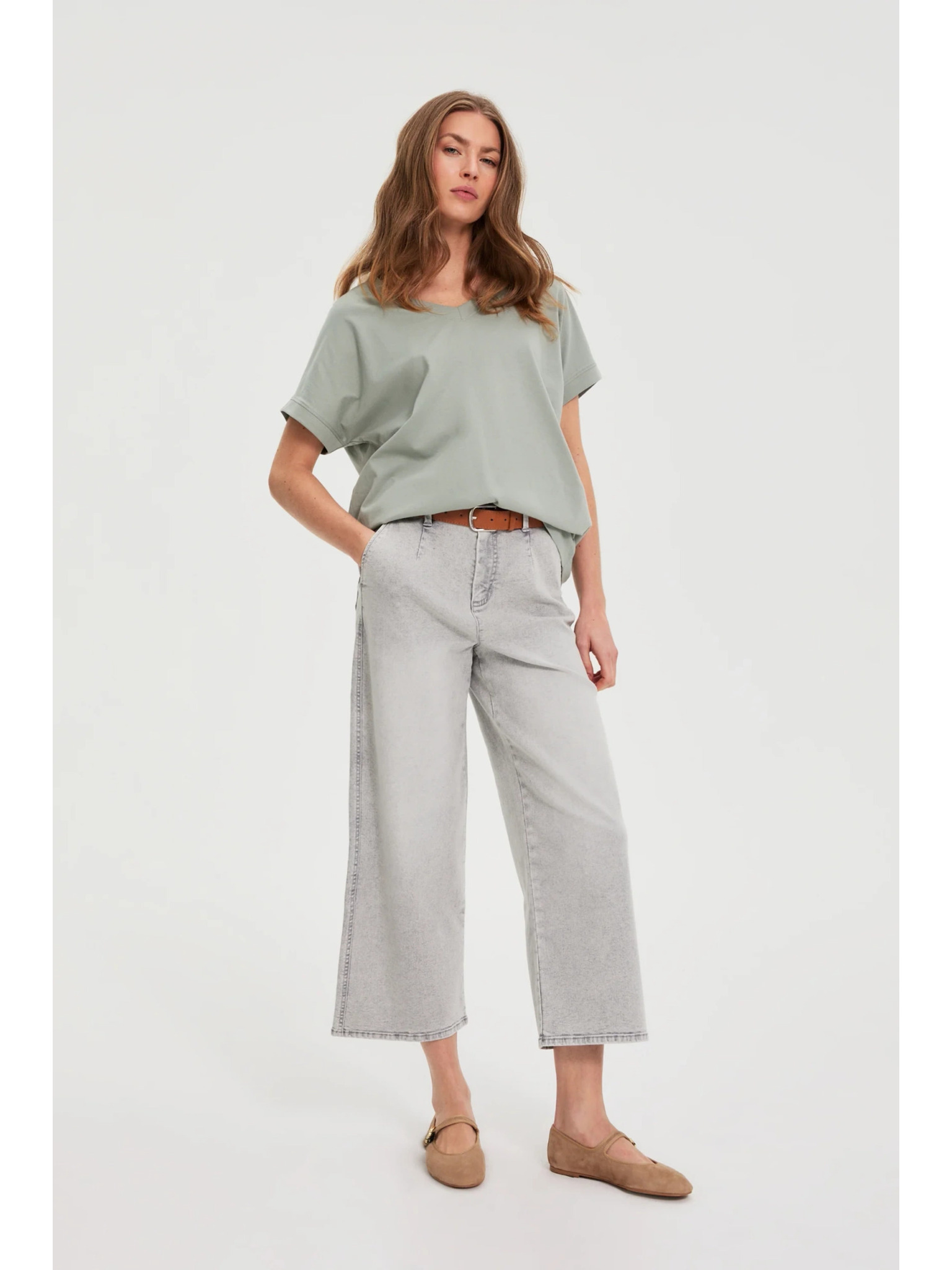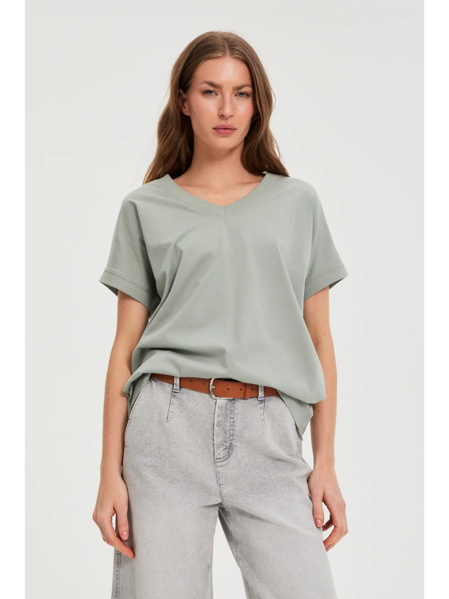 Khaki top V-nyakkivágással Moodo
