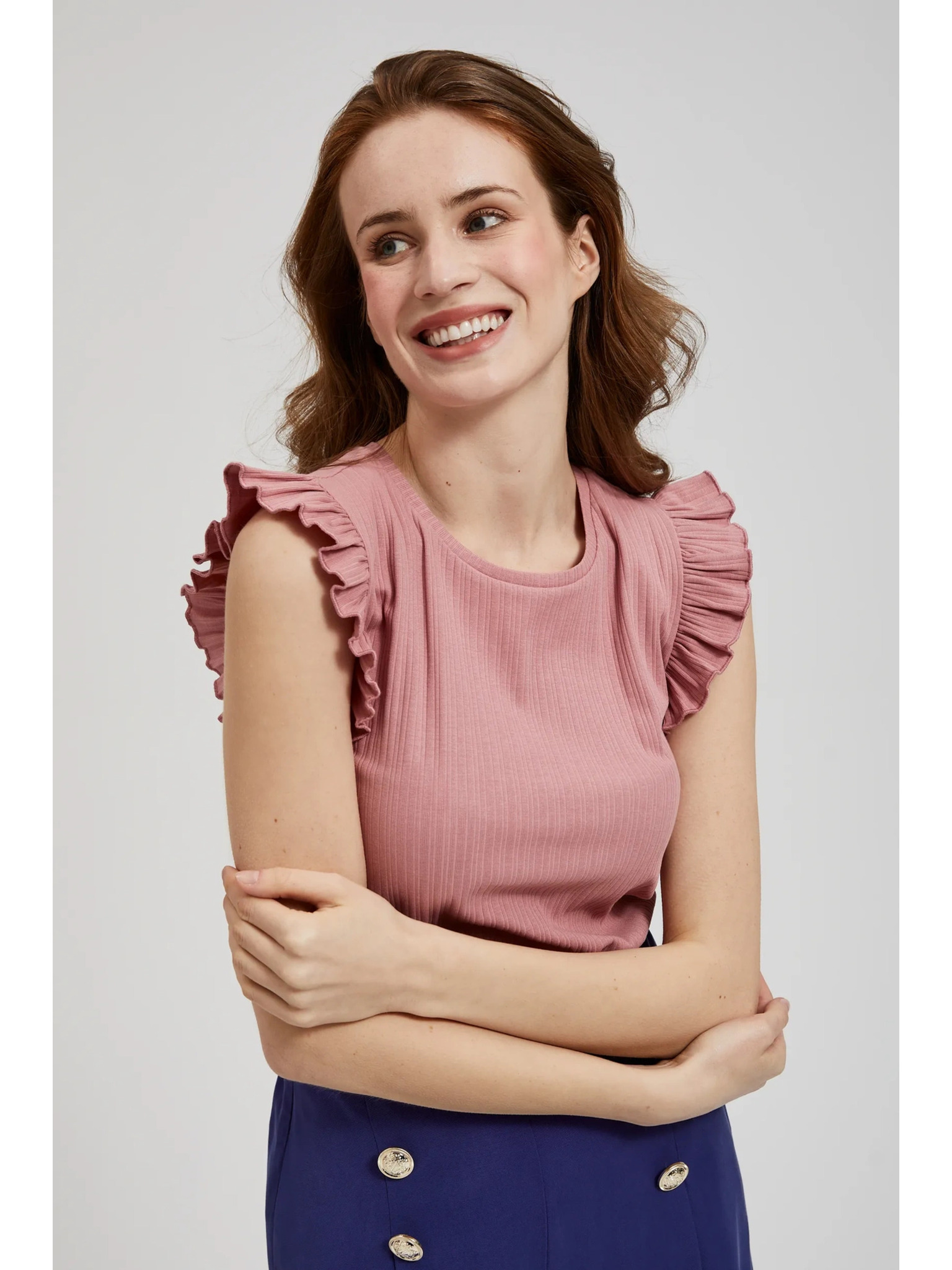 Sárga bordázott top gombokkal Moodo