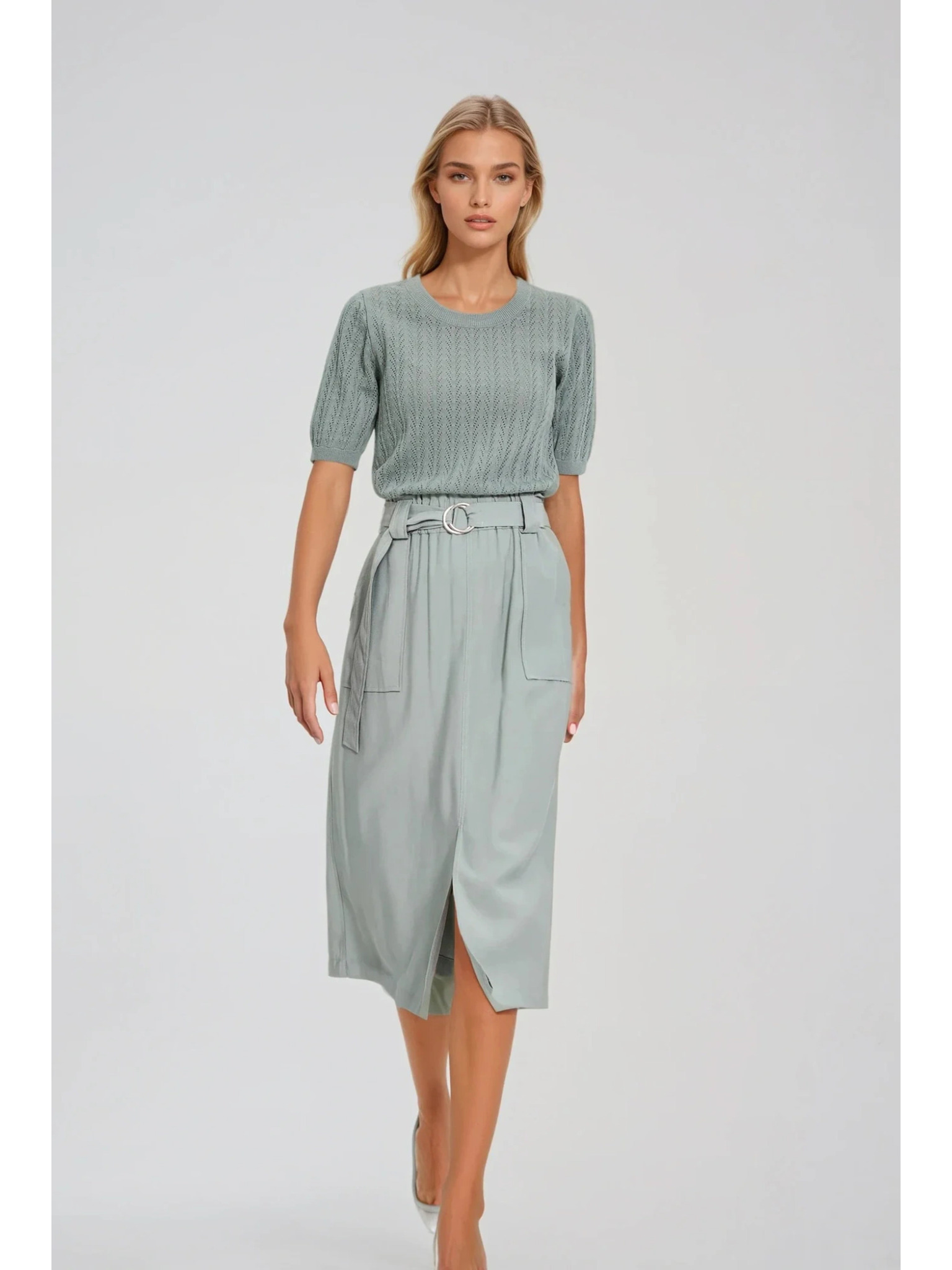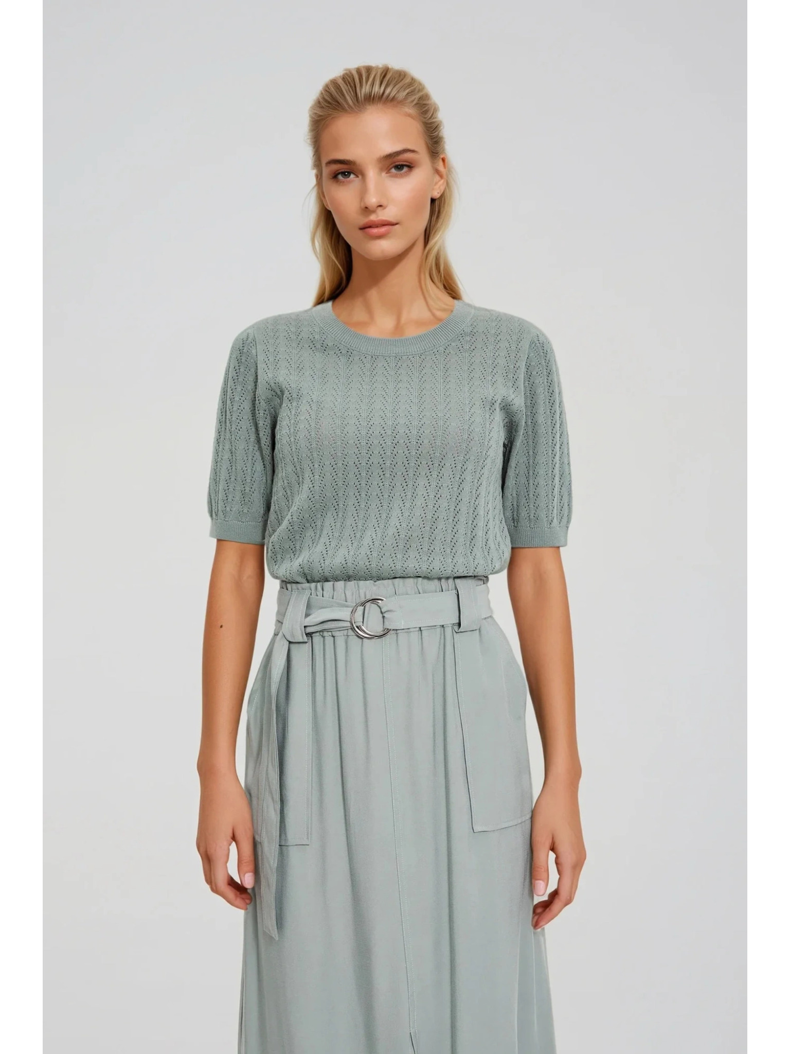 Moodo zöld pulóver kerek nyakkivágással